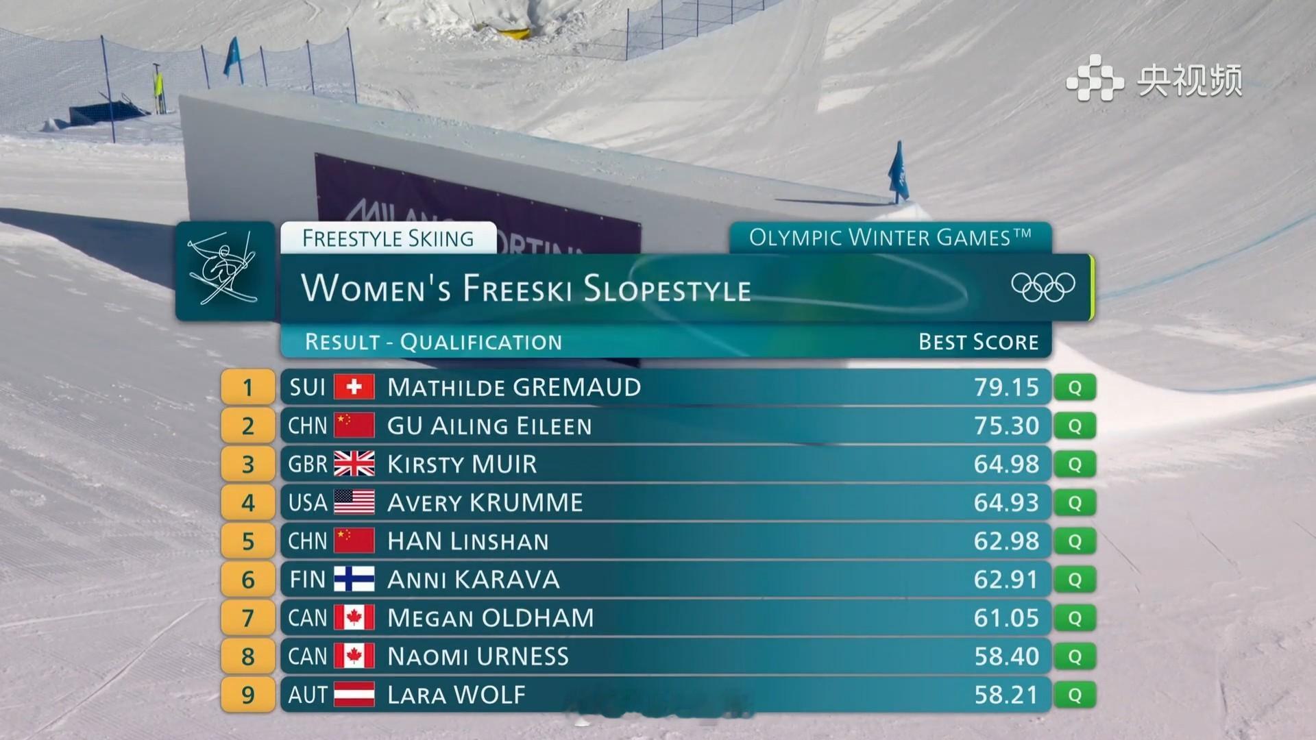 2026年米兰科尔蒂纳冬奥会 进了三个,非常可以🉑! 谷爱凌排名第二、韩林杉第五、刘梦婷第11