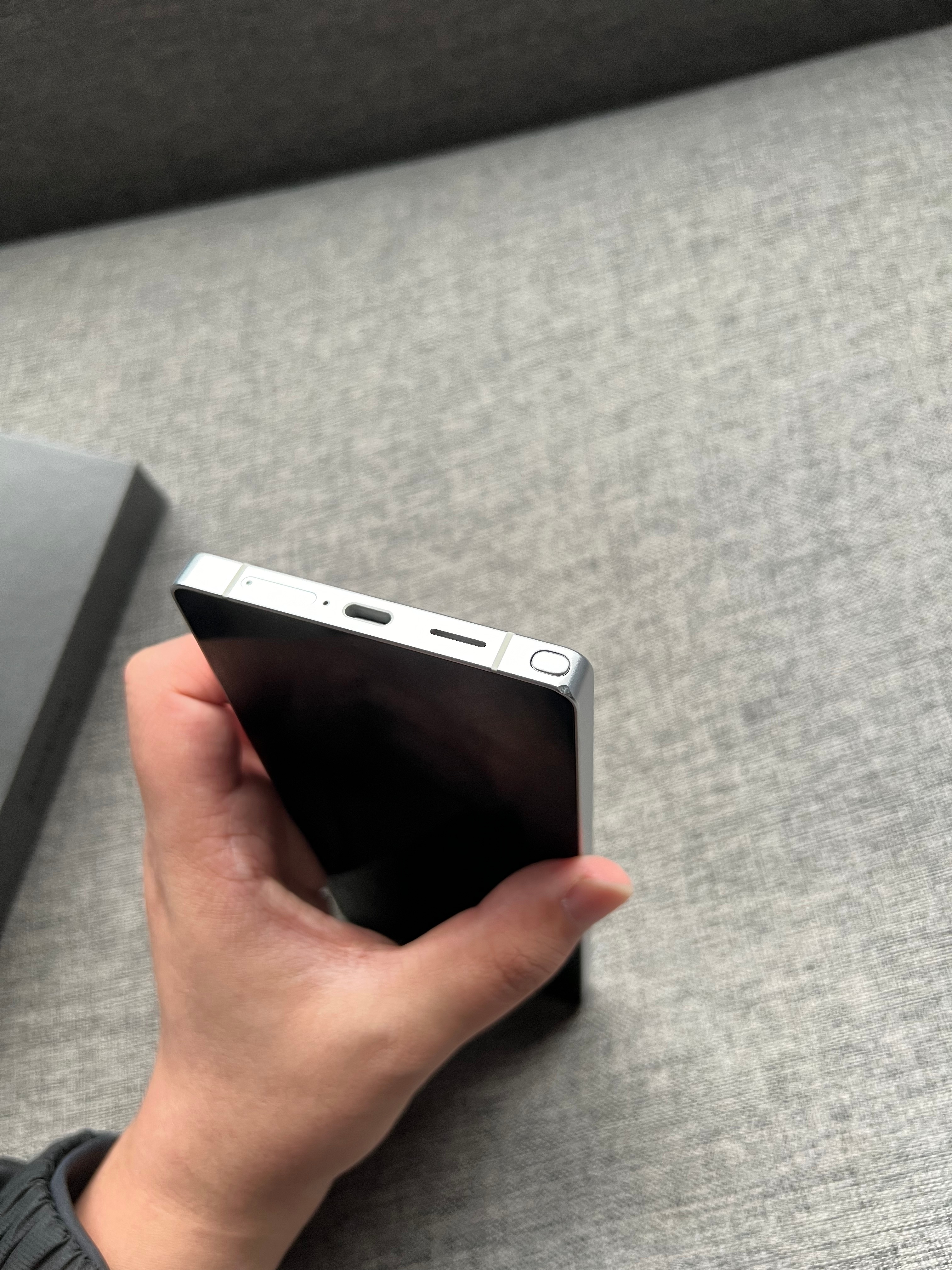 国行三星S25 Ultra 12+512G 钛辉银,屏幕细小划痕,中框一处小磕碰,带45w原封快充,店保三个月非人为损坏。5799