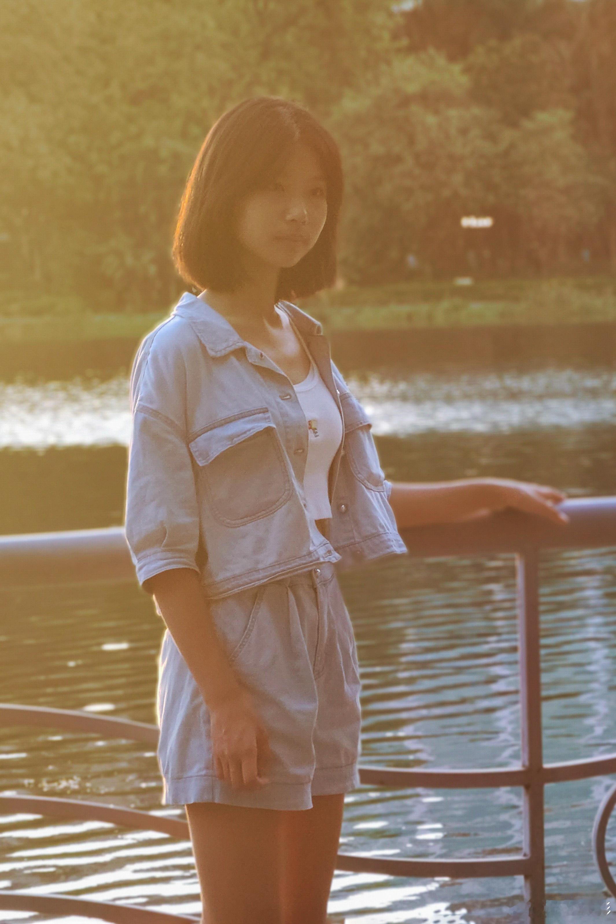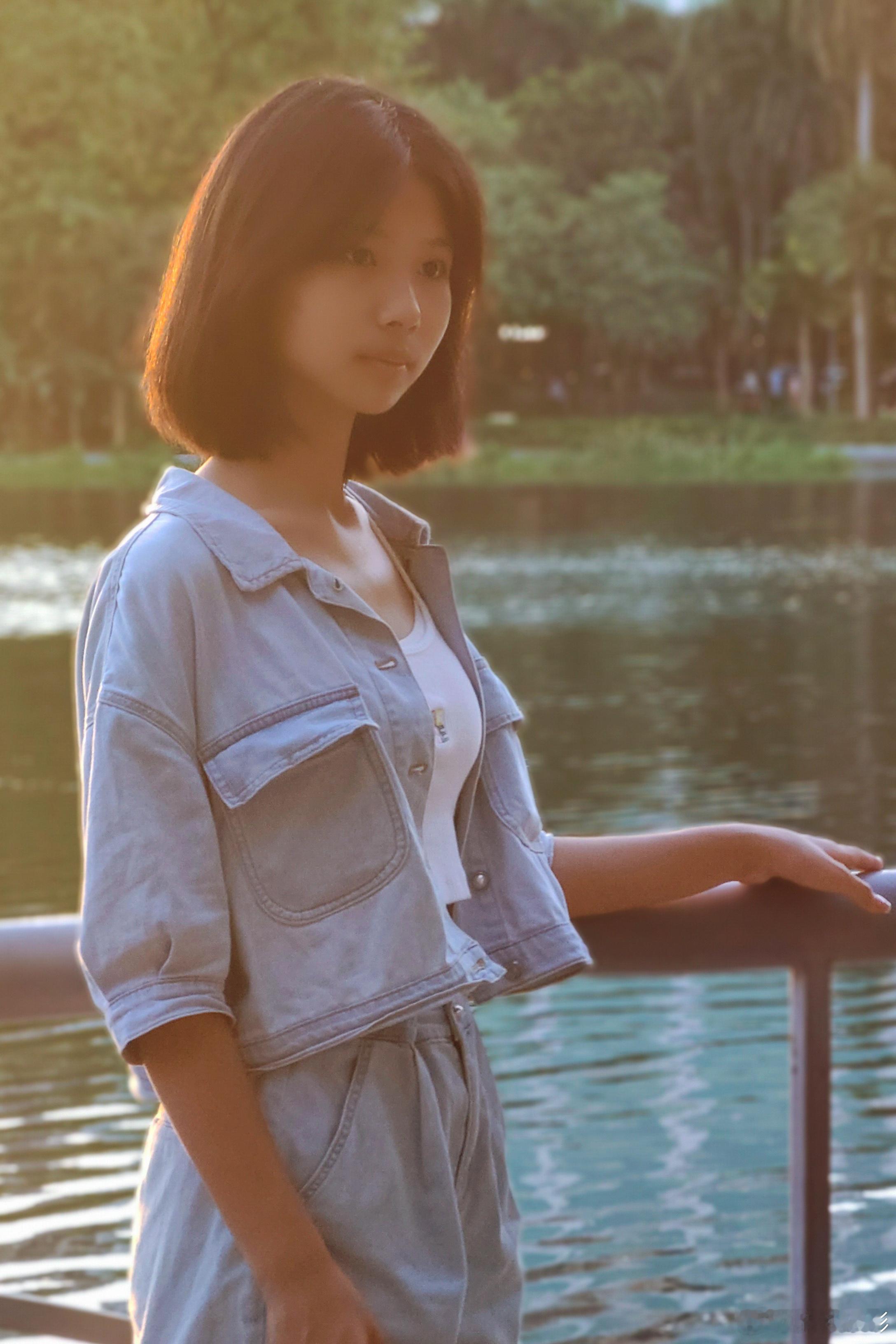 🌿流花湖的温柔暮色,连风都放慢了脚步~牛仔套装+夕阳滤镜,随手一拍都是电影感✨ (假装在欧洲小镇,其实是广州的浪漫角落)