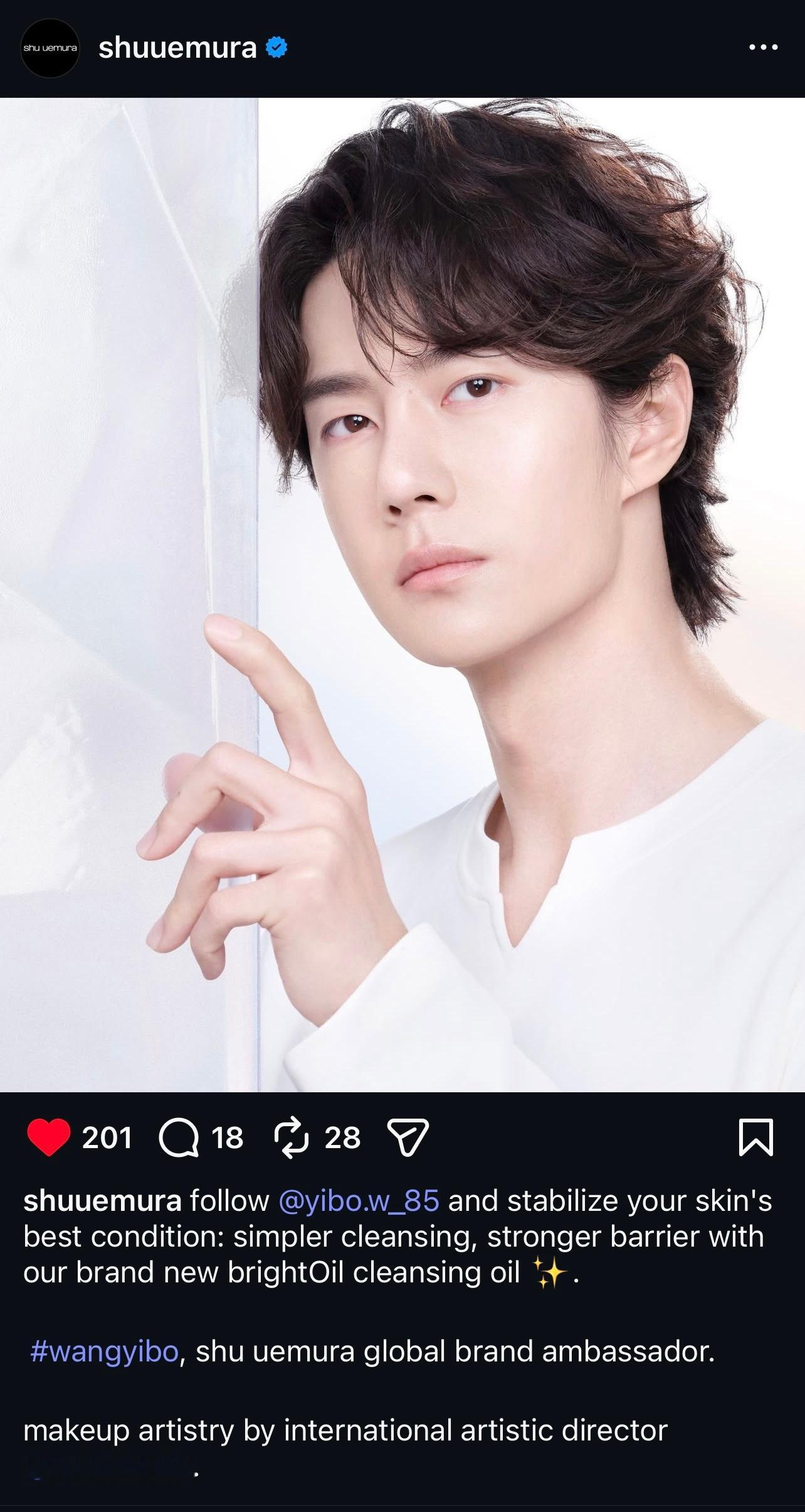 insupdate去点点👍👉网页链接王一博植村秀全球品牌代言人