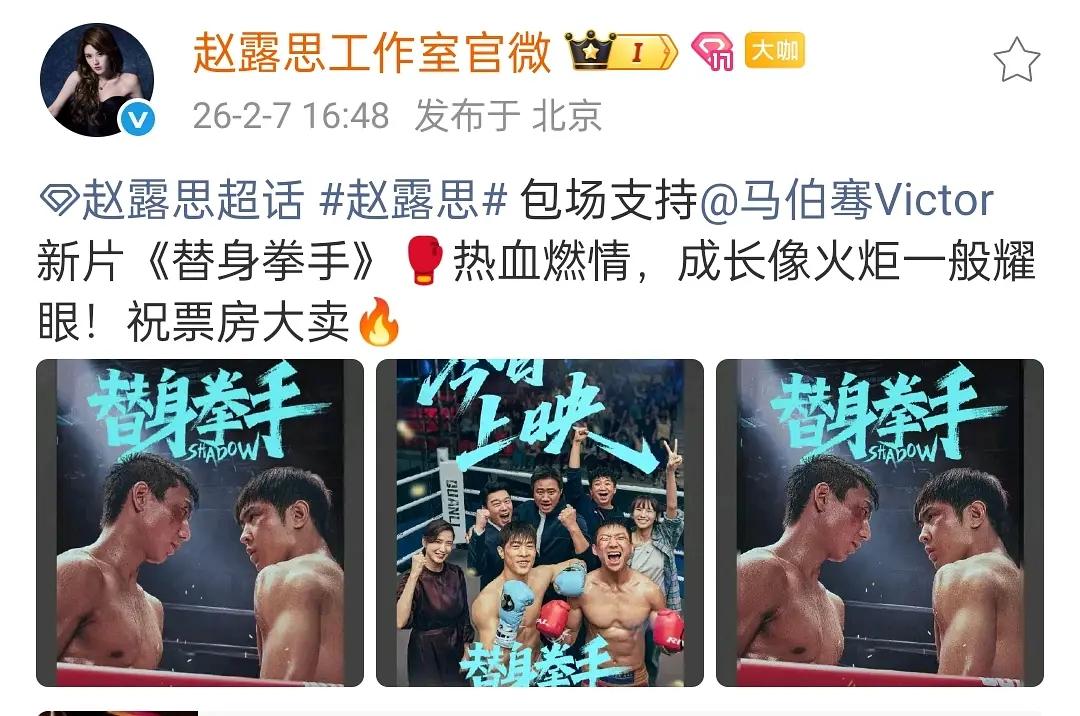 赵露思包场支持马伯骞电影《替身拳手》,兄妹关系剧里延续到剧外! 两人在《偷偷藏不住》饰演兄妹后,一直关系都挺好,马伯骞在赵露思休息那段时间还一起旅游,而这次马伯骞新电影《替身拳手》上映,赵露思也是二话不说给哥哥包场,兄妹感情真好! 赵露思 马伯骞