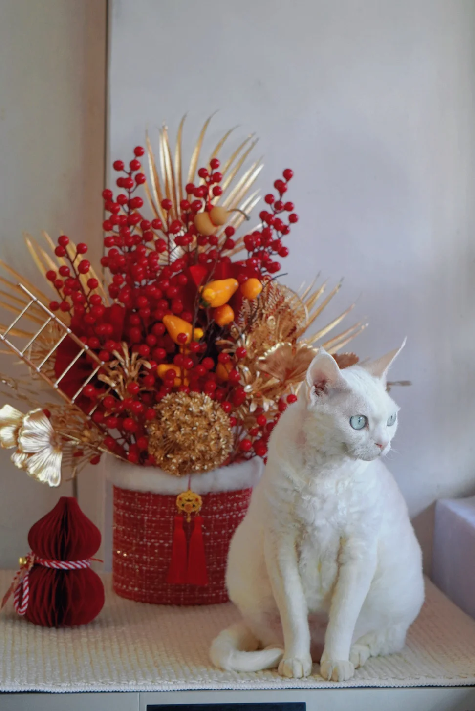 咔嚓一张新年照 猫咪 我家宠物好可爱 好好过年大赏 给娃的春节仪式感 过年氛围感拉满 德文卷毛猫 好像不太聪明的样子 春节装饰 给你看看我的猫