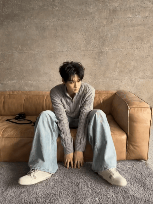 光影落在灰色绞花毛衣上,胶片相机定格松弛瞬间。时而直视镜头的清冷,时而比心的软萌,田栩宁把慵懒与少年感揉得恰到好处,每一帧都是治愈系画报✨
