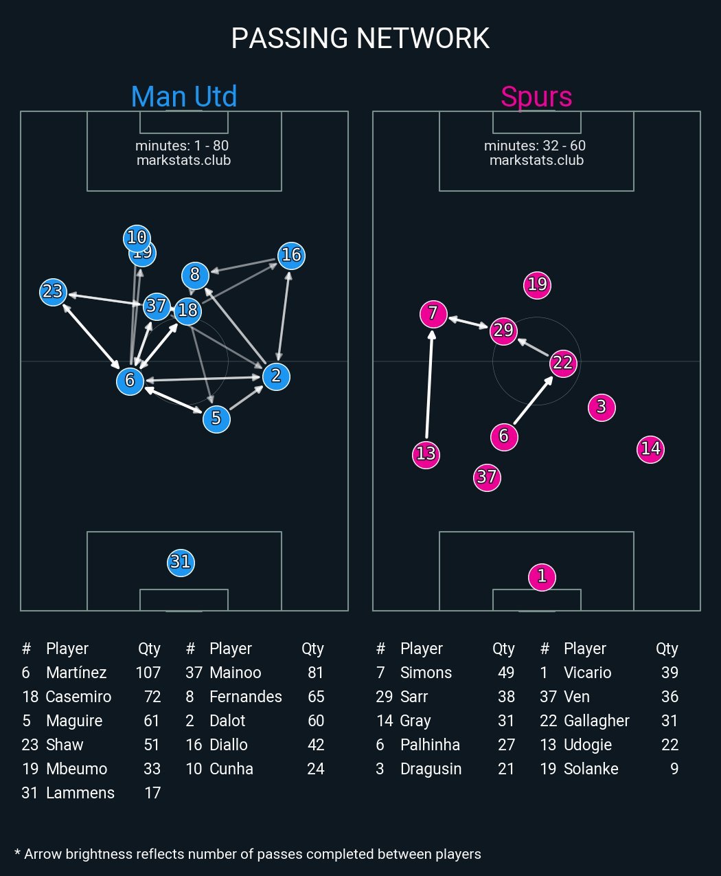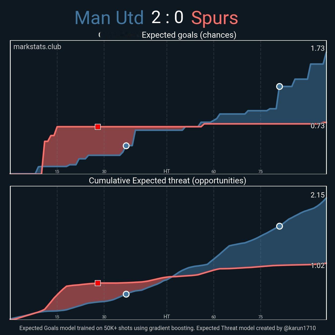 ▪ xG: 1.73 - 0.73▪ xThreat: 2.15 - 1.02▪ Possession: 65.2% - 34.8%▪ Field Tilt: 79.1% - 20.9%▪ Def Action Height: 53.7 - 36.7▪ Penbox shots: 10 - 3▪ Deep Entries: 21 - 9▪ Buildup completion: 91.1% - 81.6%▪ PPDA: 7.5 - 14.5▪ High turnovers: 7 - 3