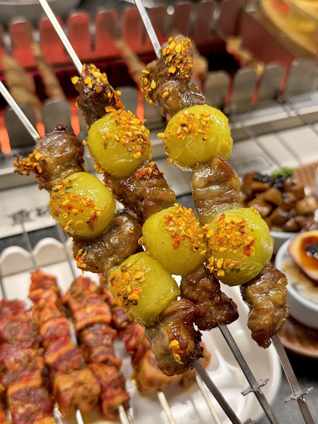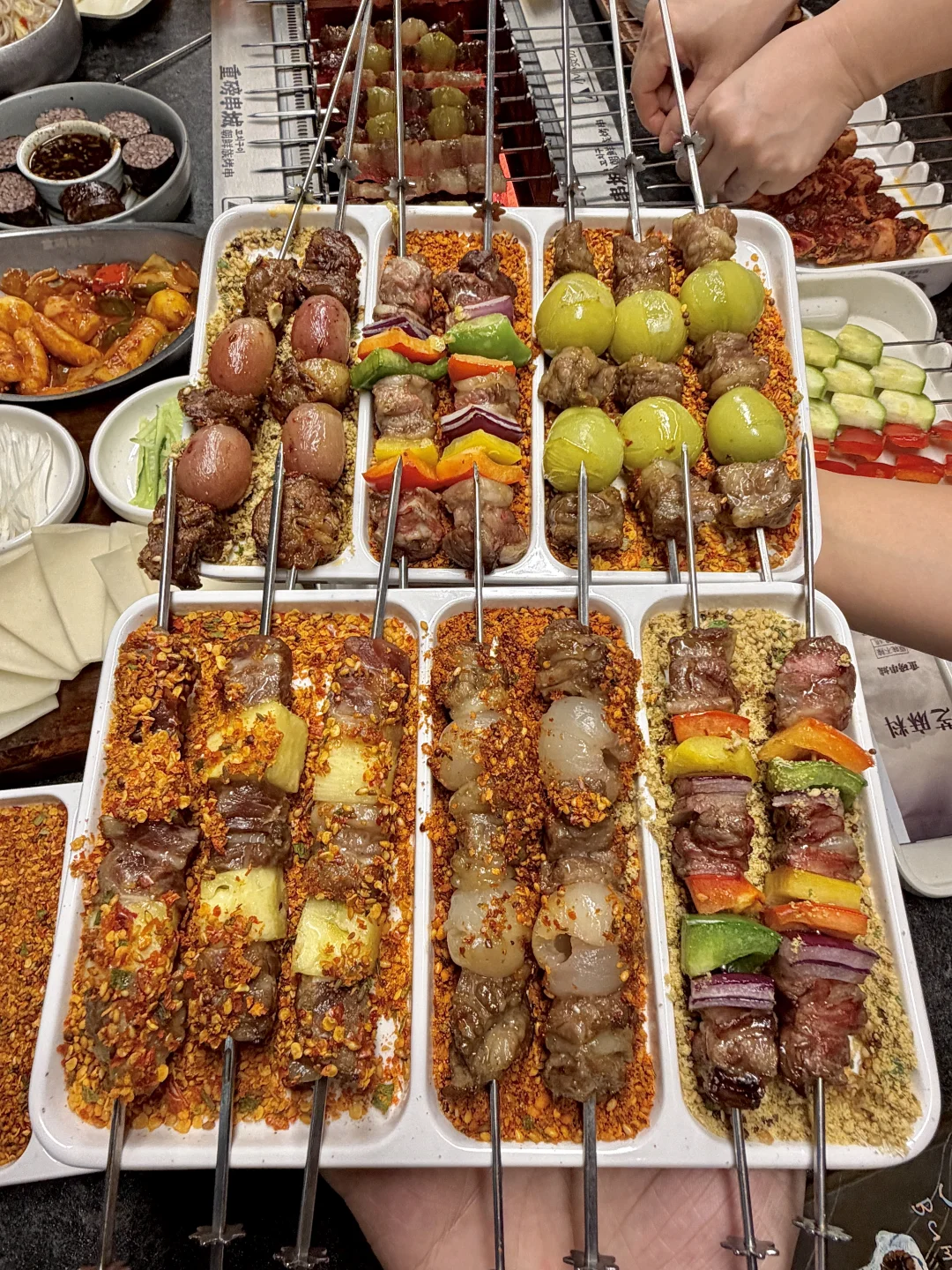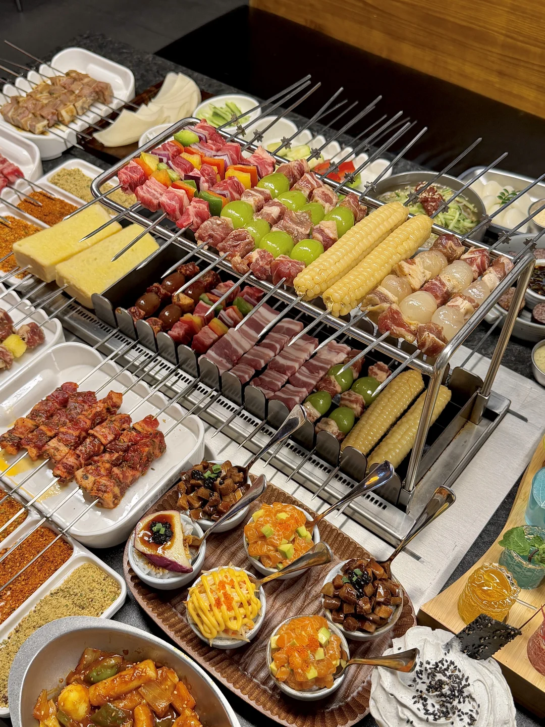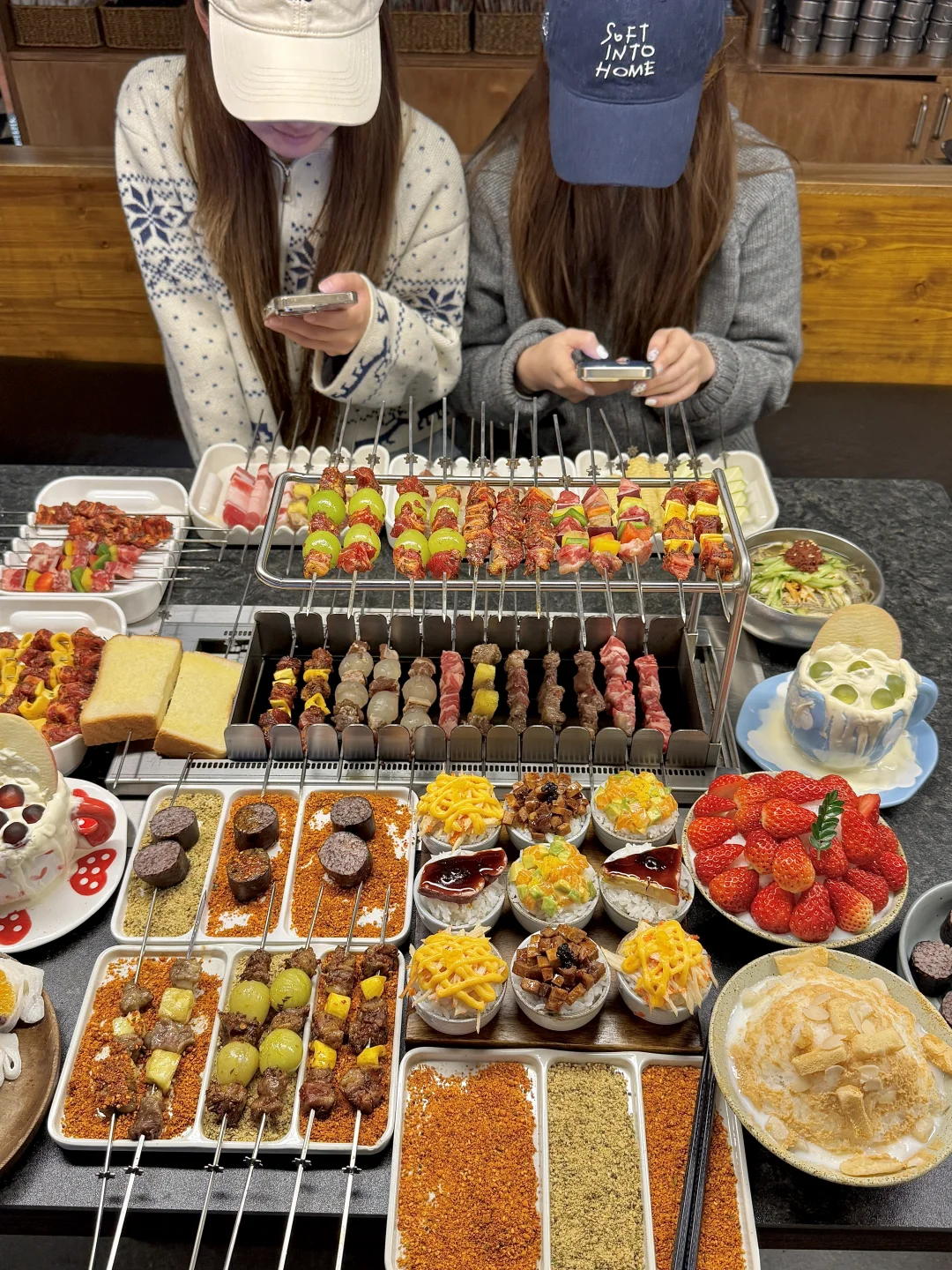 终于吃上了!!济州岛同款!!橙子红豆麻薯… 苹果奶冰🍧mini一口饭🍱草莓雪花冰🍓宫后夹肉都吼吼吃。感谢本地人带路,每天饭点座无虚席🥵延边烤串都夸好吃,随便点都不踩雷!!! 📍就在衡阳步步高!叫:重磅串城。