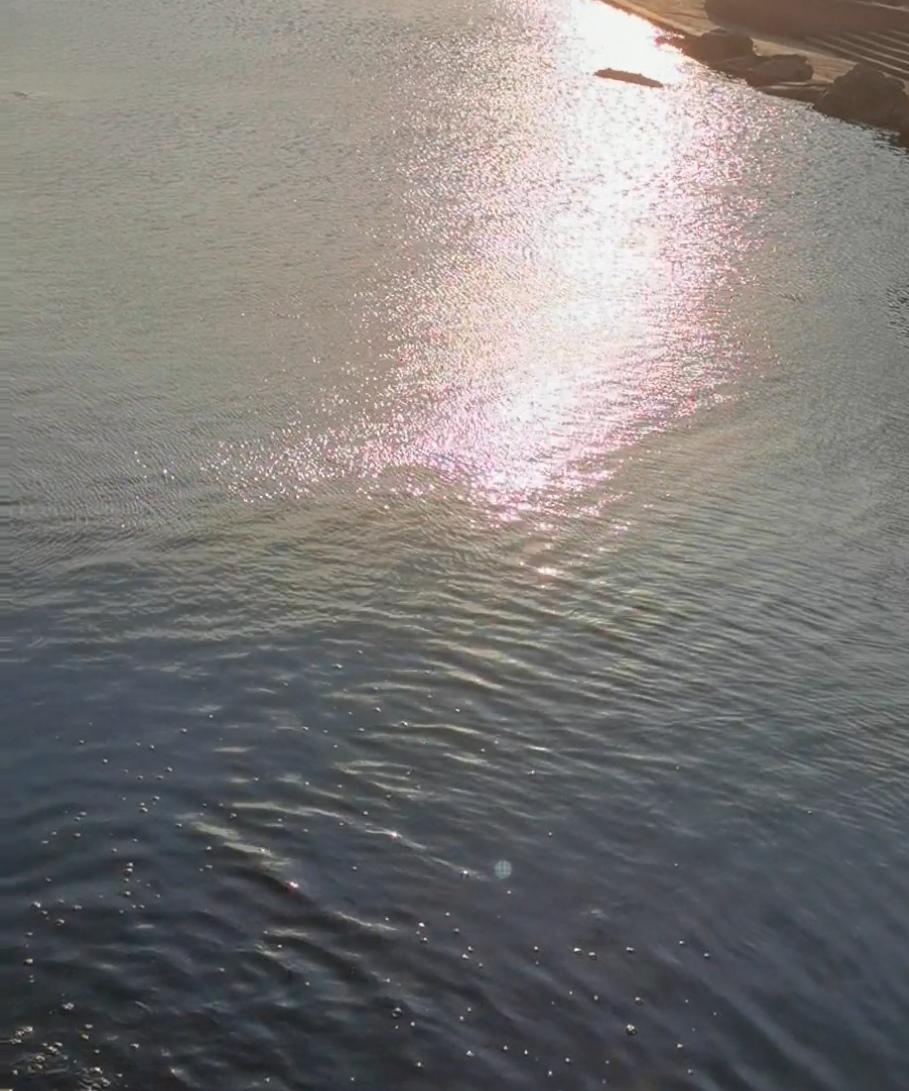 夕阳夕照, 今天是今冬难得零下的低气温, 河水没有结冰, 强风吹动下的水面波光粼粼, 煞是好看[笑]