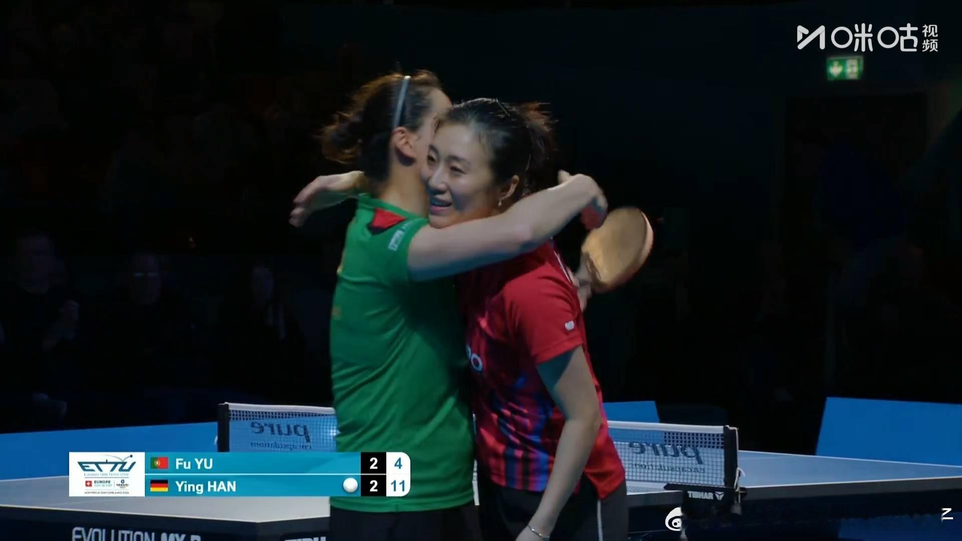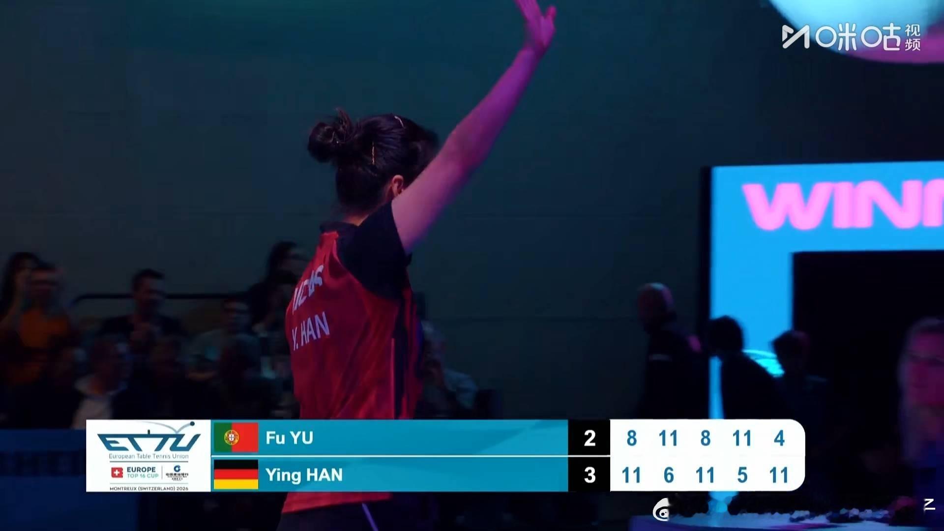 韩莹3比2付玉(6,-8,8,-5,4)晋级2026年国际乒联欧洲16强杯女单半