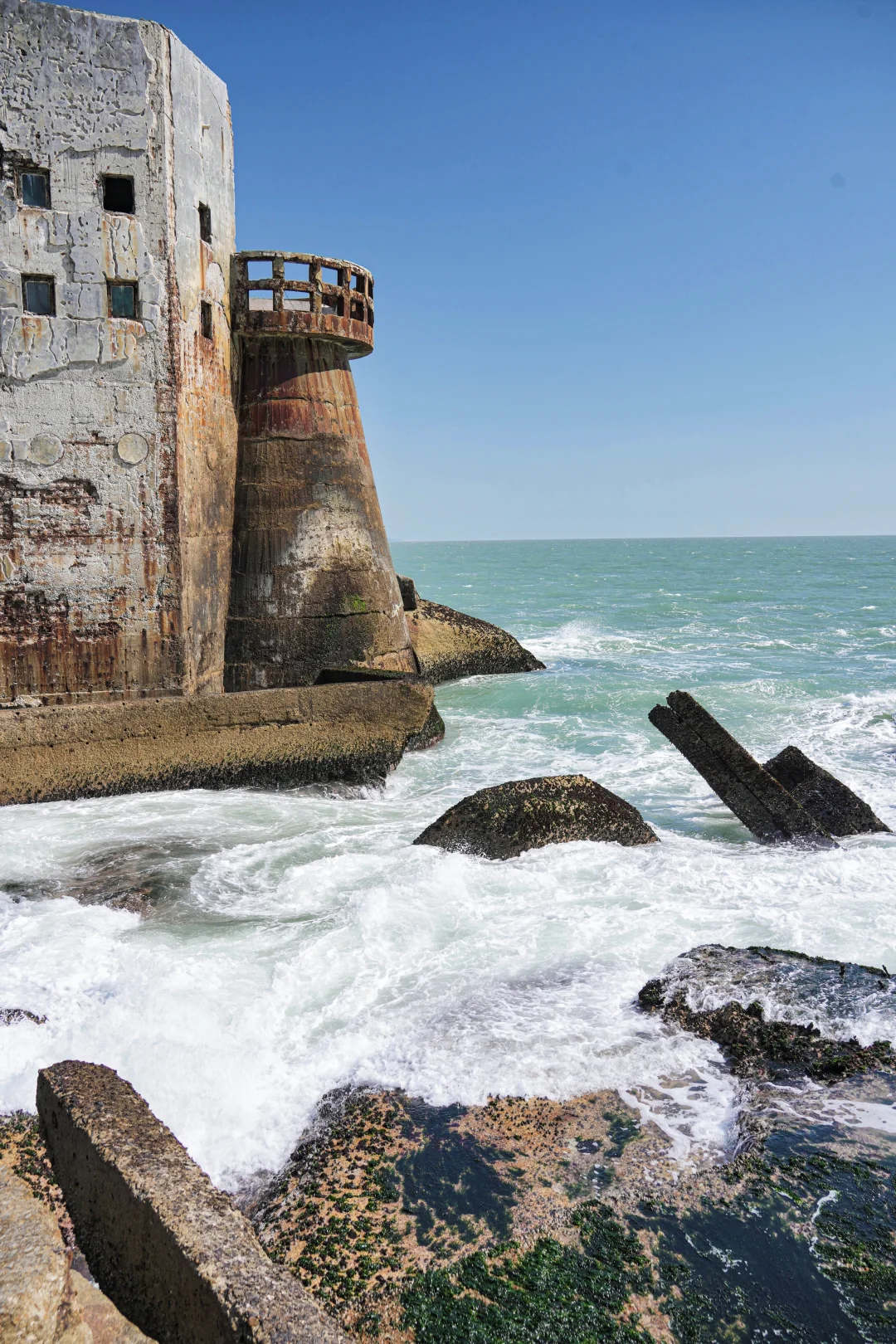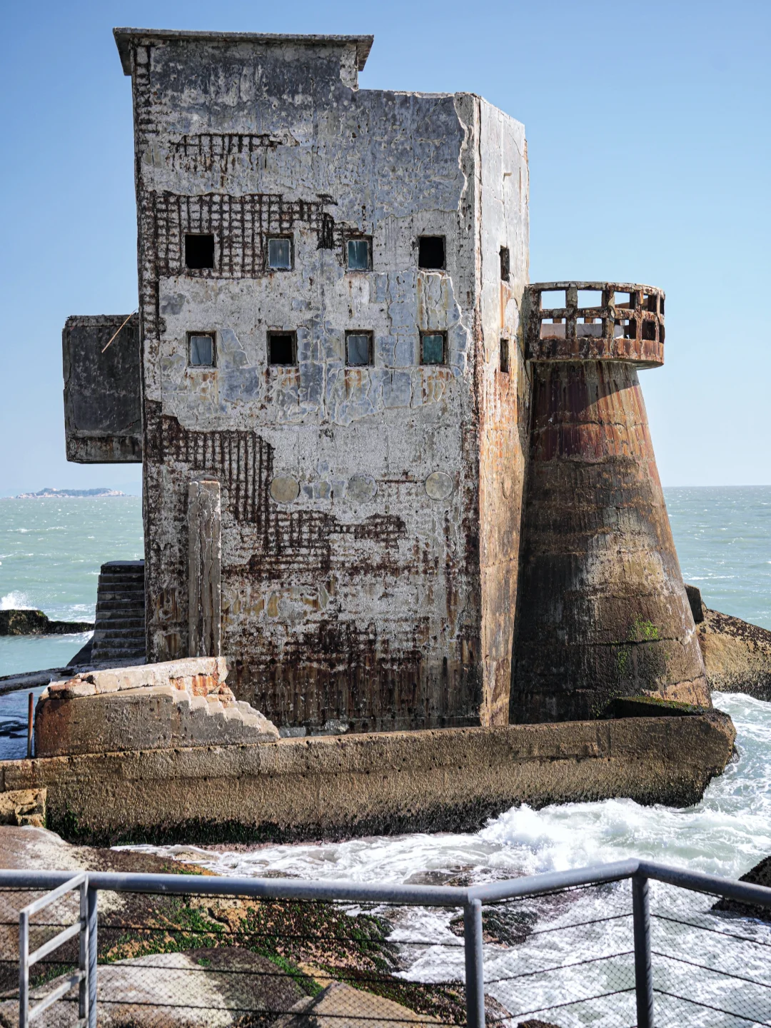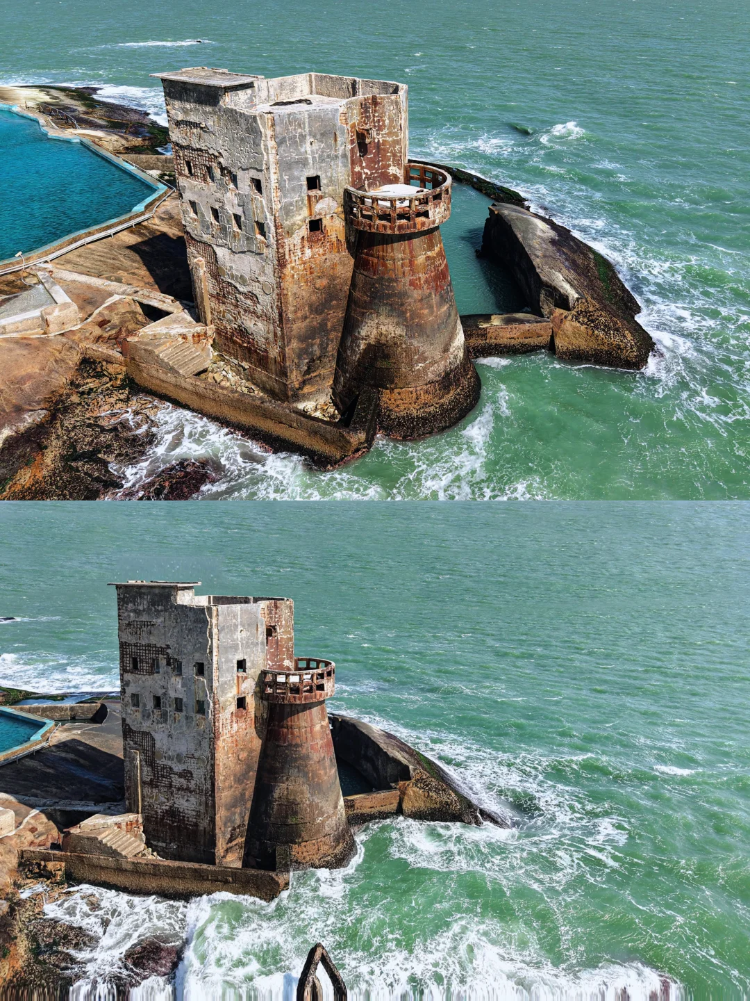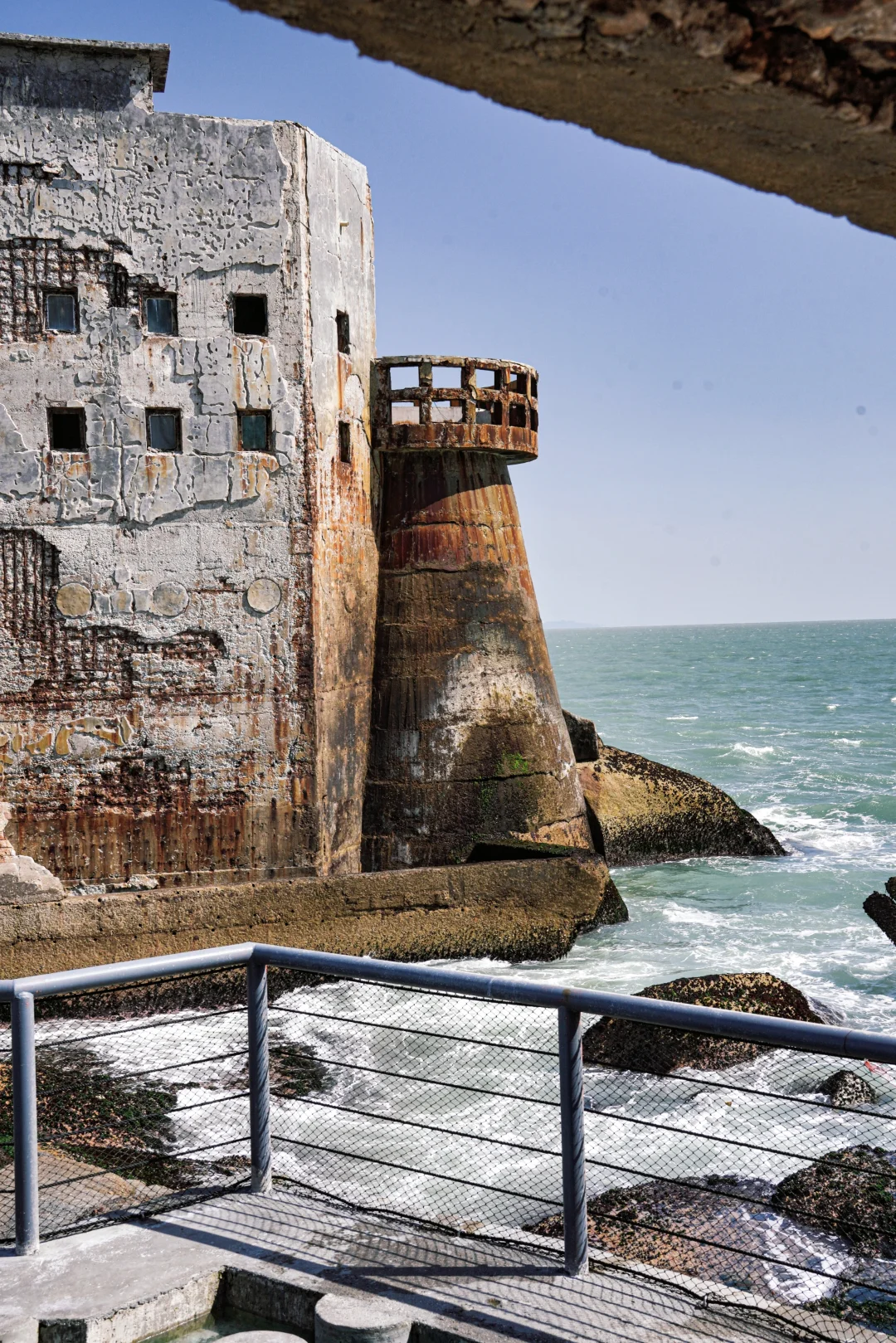 . 混凝土构建的堡垒,被蚀成蜂窝 巨浪拍来时,整栋楼像即将启航的沉船... . 享受孤独感的人会念念不忘的地方 . 📍广东.汕尾.海上古堡 . 去年春节去的,早上九点半点到还完全没有人,但十点半之后就开始排队拍照了 . 曾经的小众景点,现在的网红打卡地, 人多就没有那个意思了, 一上午见证了这个过程有些遗憾又有点庆幸~ .