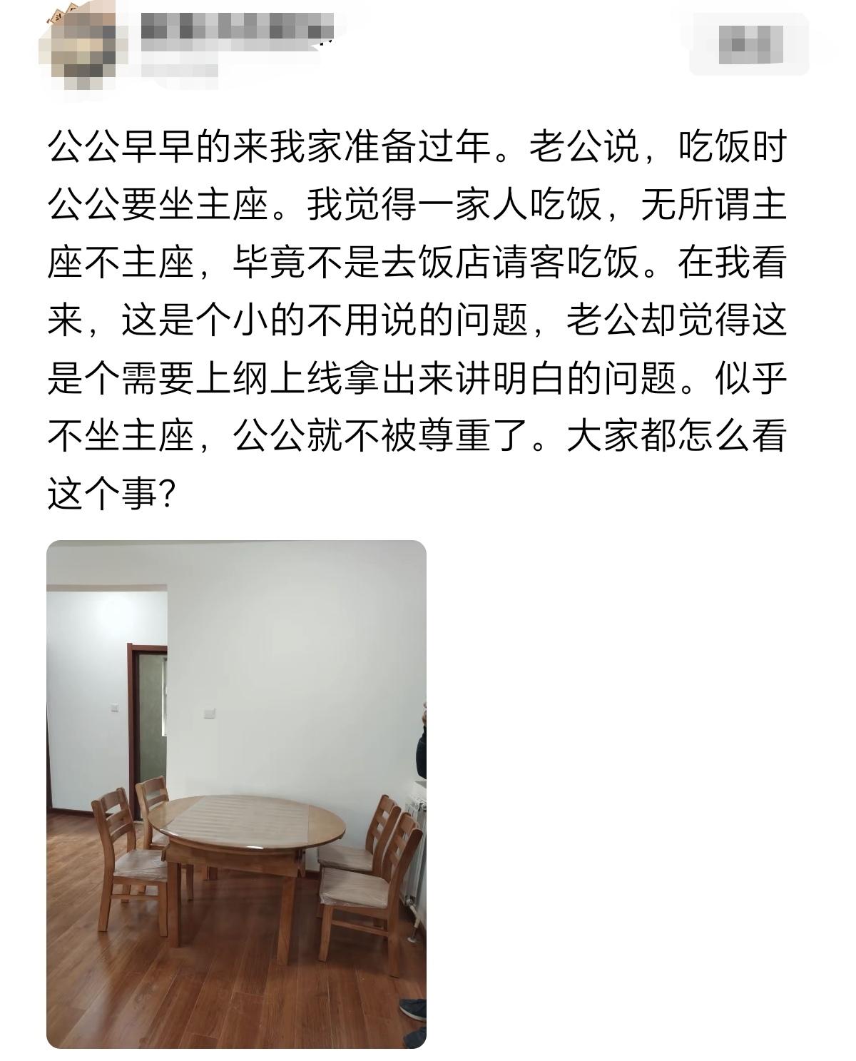 尊重家里老人,吃饭时,儿子儿媳妇,让孩子的爷爷坐主座,那也是应该的。不过,这张桌子,哪一个位置是主座?如果椅子拉开,一家人坐下来吃饭,那么老爷子应该坐在哪个位置,算是主座呢!靠着墙坐?靠着落台坐?还是正对着门口那个位置坐?