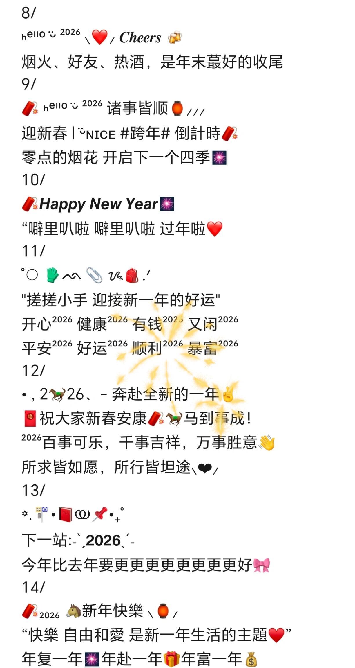 10:🧨𝙃𝙖𝙥𝙥𝙮 𝙉𝙚𝙬 𝙔𝙚𝙖𝙧🎆“噼里叭啦 噼里叭啦 过年啦❤新年文案春节文案朋友圈除夕夜朋友圈文案马年