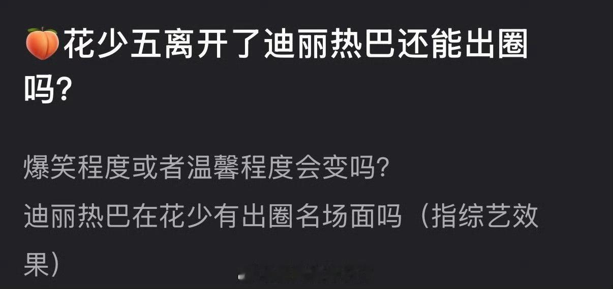 大家感觉花少五离开了迪丽热巴还能出圈吗?爆笑程度或者温馨程度会变吗?