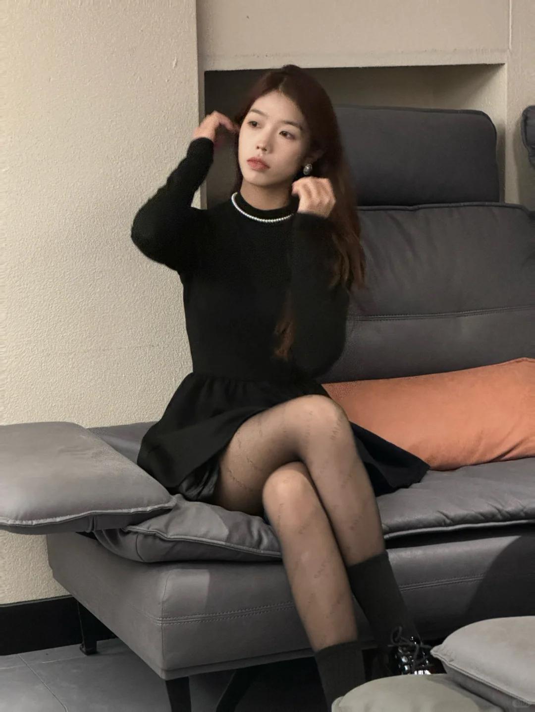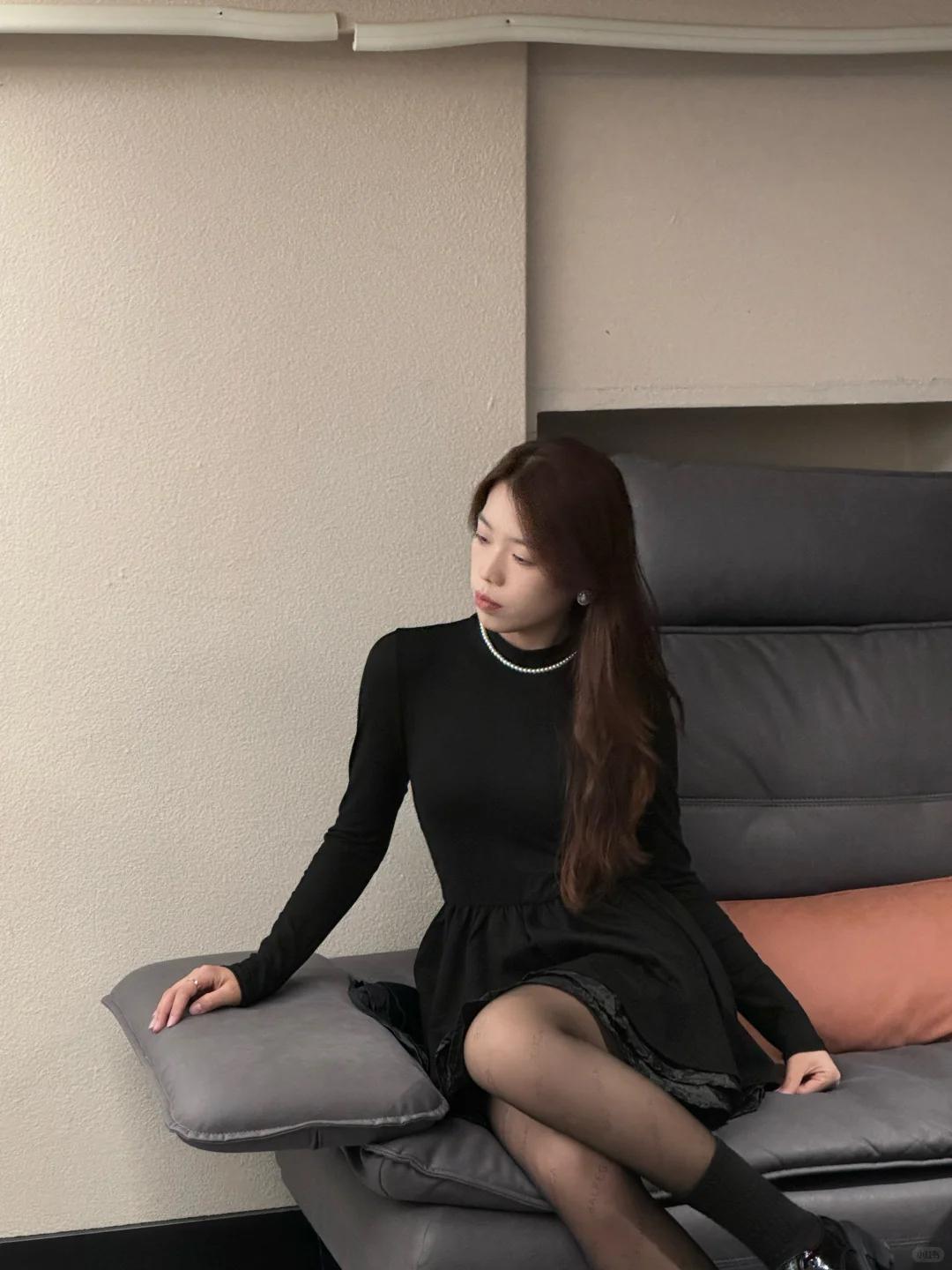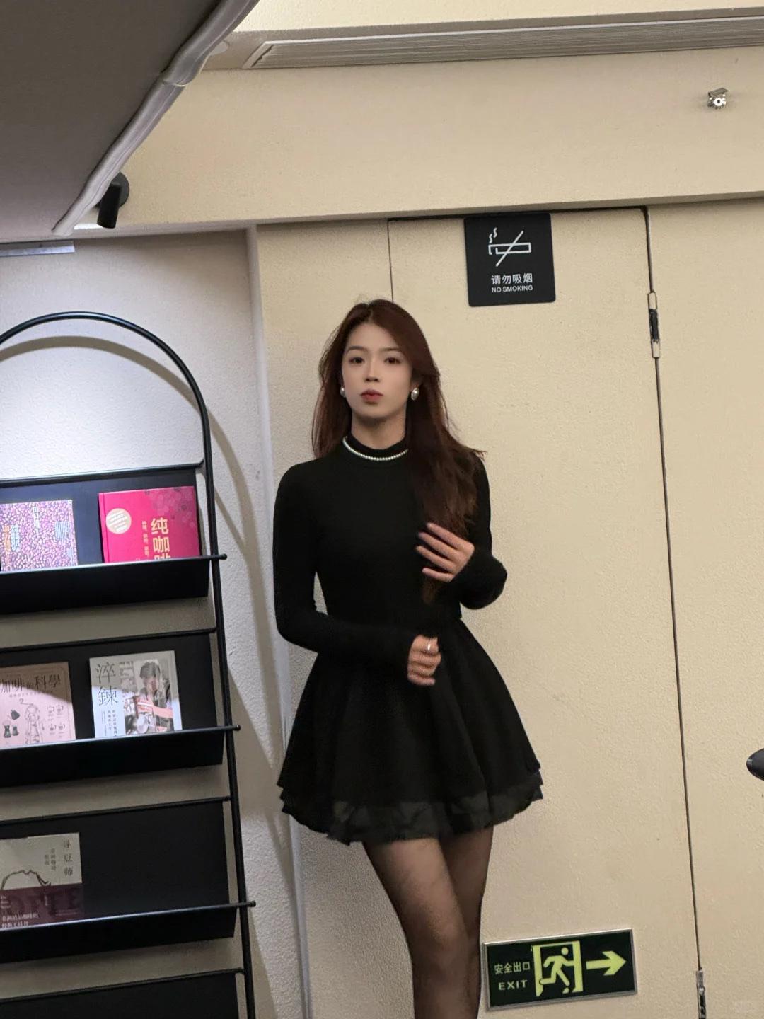 墨绿披肩裹着东方韵味,黑裙与高跟鞋勾勒出利落线条,在静谧的禅意空间里,温柔与气场