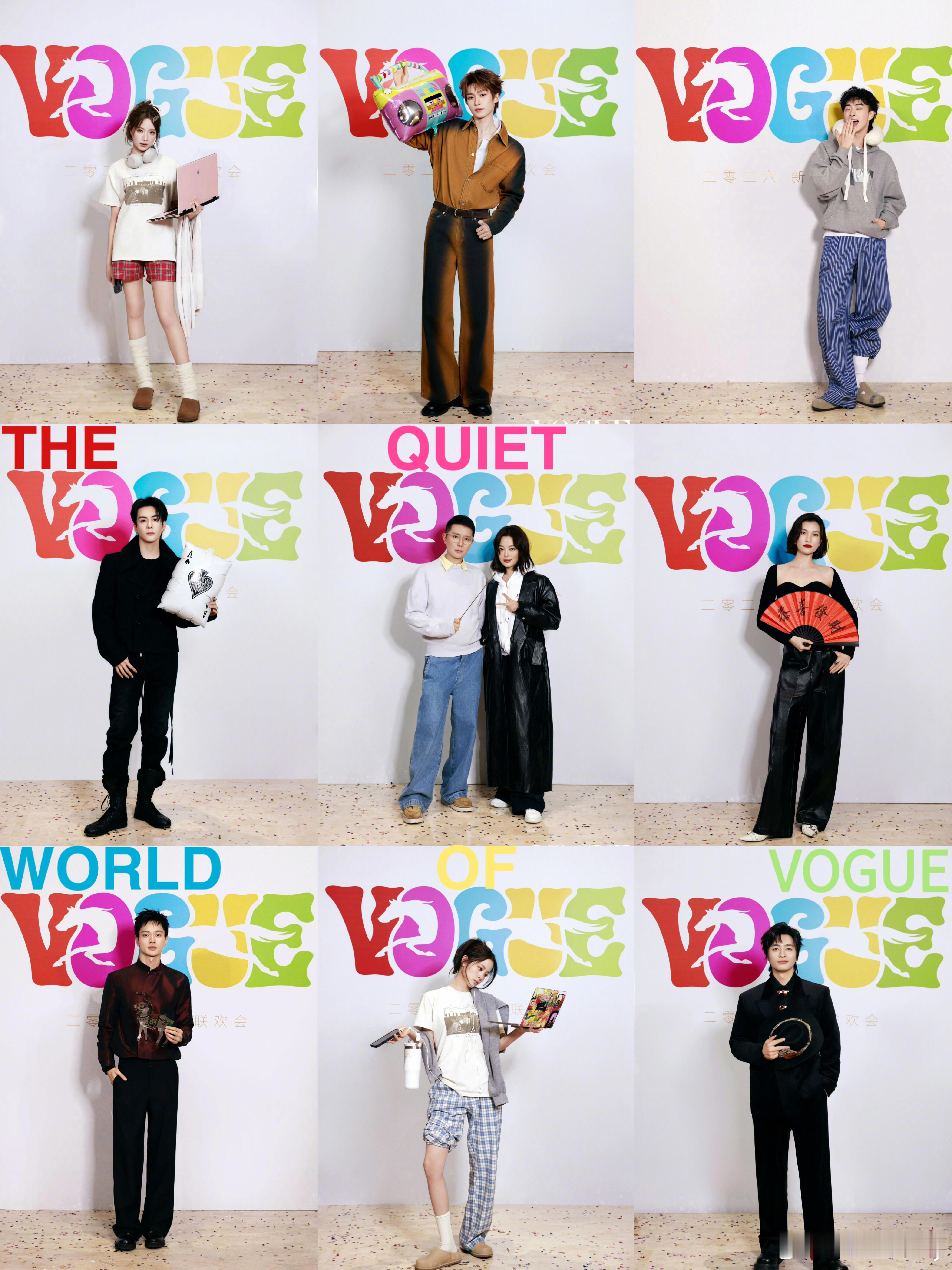 VOGUE年会嘉宾阵容全员不想上班,奔赴VOGUE年会!辛芷蕾刚下班,就来VOGUE年会比了个耶。梓渝说不想上班,来VOGUE年会整了点音乐。恩利说不想上班,下了飞机就来VOGUE年会了。刘旸教主说不想上班,来VOGUE年会变个魔术。欧阳娣娣 说不想上班,拿着浴巾来到VOGUE年会,她也带了电脑。歐陽娜娜说不想上班,穿着睡衣来到VOGUE年会,不过,她同时还带了电脑。黄曦彦说不想上班,带一匹马来到VOGUE年会。李丹妮说不想上班,在VOGUE年会恭喜大家发财。曾舜晞说不想上班,打算在VOGUE年会娱乐一下。米卡MIKA 说不想上班,在VOGUE年会唱得很嗨。星光齐聚,欢乐拉满,这才是年会该有的样子!