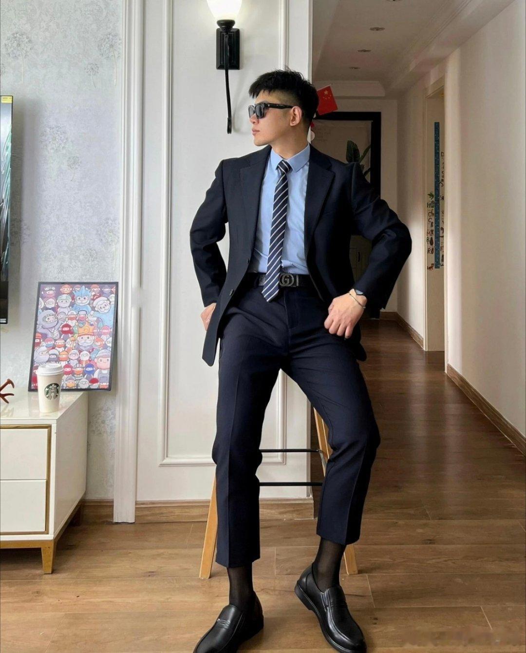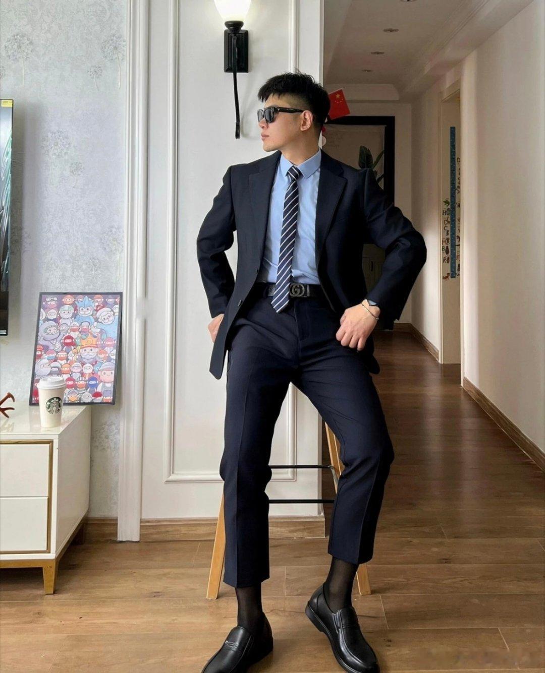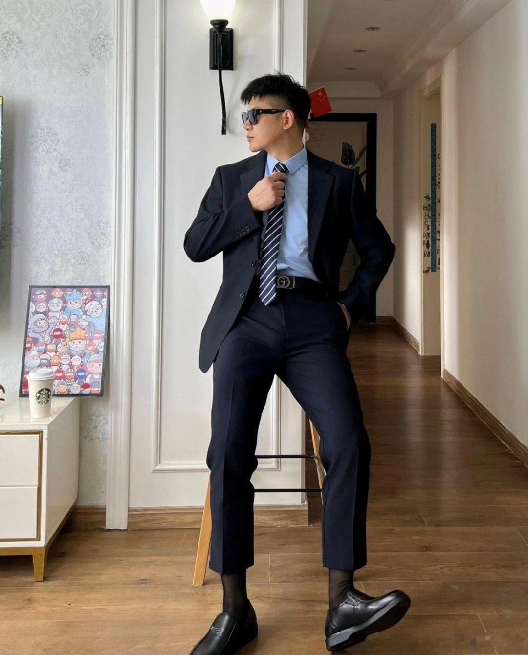 “谁懂啊!一身笔挺西装搭配黑丝,把精英感和性感拿捏得死死的!有没有跟我一样,对这种正装反差感毫无抵抗力的?西装 + 黑丝,这才是都市型男的打开方式西装的N种搭配法西装杀小性感