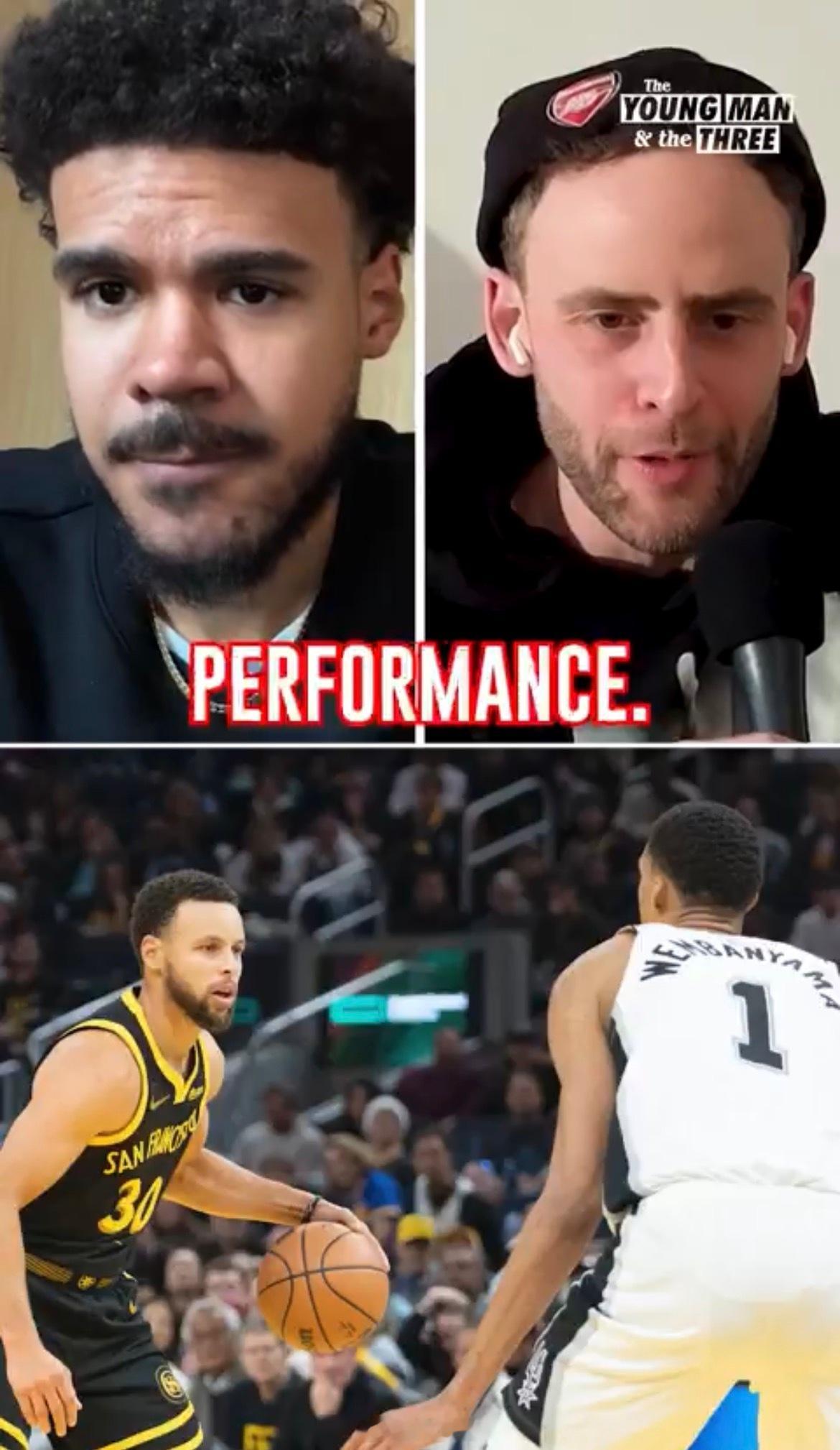 卡姆·约翰逊在The Young Man and The Three播客上说,他愿意花钱看两个球员的比赛:库里是用平凡的身体做不平凡的事情;文班拥有巨人的身体,能跟普通身高一样灵活。