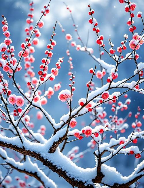 上联:红梅含苞傲冬雪, 下联:柳绿吐絮迎新春, 下联:金蕊飘香染霜天。
