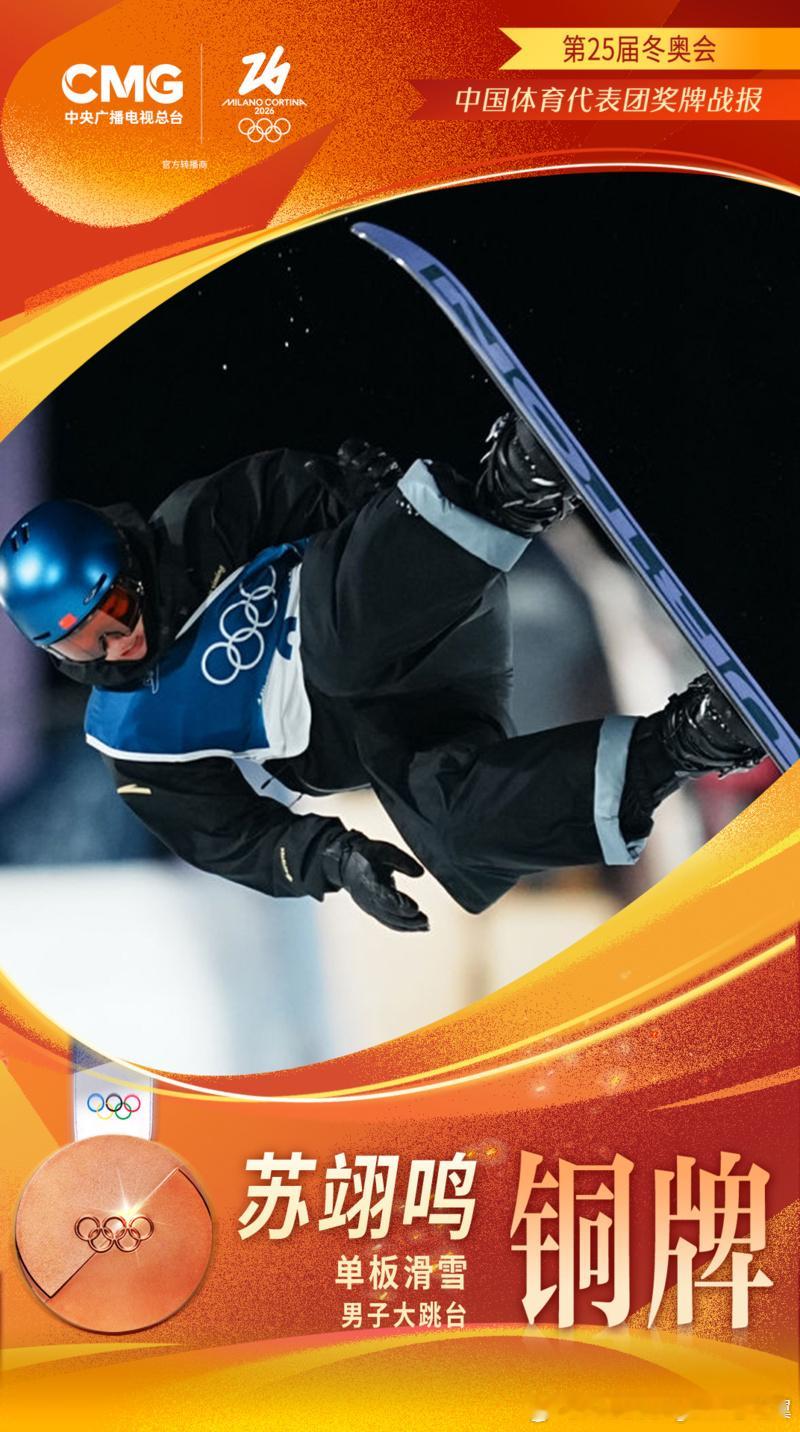 在2月7日(北京时间2月8日凌晨)的米兰-科尔蒂纳冬奥会单板滑雪男子大跳台决赛中,中国名将苏翊鸣以168.50分的总成绩获得铜牌,为中国代表团夺得本届冬奥会首枚奖牌。日本选手木村葵来和木俣椋真分别以179.50分和171.50分包揽金银牌。