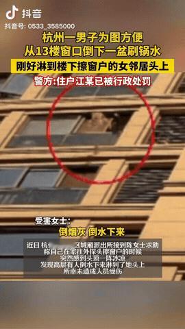 浙江杭州,一女子在家擦窗户,刚把窗户打开伸出头,结果她就被淋了一锅刷锅水,满头都是油腻腻的,女子马上报了警,后经警方调查,原来泼水的是13楼住户的男子,最终男子被拘留后悔莫及。 信息来源:鲁中晨报 这事发生在2026年1月的一个平常午后,地点是萧山区城厢街道某小区。 陈女士当时拿着抹布,正准备给厨房窗户来个大扫除,一不留神,头伸出窗外,就感到一阵冰凉——原来是从13楼泼下来的一盆刷锅水! 水里全是油垢、剩饭粒和蔬菜叶,黏糊糊的,味儿还怪刺鼻。 吓得陈女士连忙后退,满头满脸的油水让人直起鸡皮疙瘩。 她先搓着头发把粘腻感冲了冲,稳住情绪后打了个110。 派出所接到报警后,城厢街道派出所的视频侦查小组马上出动,调取小区里四面八方的摄像头。 智能分析系统一对比,很快就锁定了13楼某单元——正是江某家那扇窗。 民警敲门,江某看到照片证据,赶紧承认了:他图省事,刷锅水洗完锅后直接从窗户倒下去,“就走两步路”,根本没想过会砸到人。 可事实摆在眼前,不管他是不是“故意”的,这种从高空倒东西的行为,已经构成“高空抛物”——新修订的《治安管理处罚法》第四十三条从1月1日起正式生效,只要有危害他人安全的可能,不管抛的是什么,都得处罚。 新法规定,普通情节的,可以处五日以下拘留或一千元以下罚款;如果情节严重,拘留十到十五天,还可并处罚款一千元以下。 江某这次虽然没砸伤人,但已是杭州市新法施行后的首例高空抛物违法案件。 他被处以几天行政拘留,并留下了案底,从此还得背上一张“懒惰税”收据。 要知道,以前要是泼了水、丢了垃圾,没闹出大动静,顶多就批评教育,说声对不起,赔个清洁费就完事了。 可如今数字化监控和严格执法来了,谁也逃不掉“头顶上的安全”。 更别提,如果高空抛物真把人砸伤了,甚至可能触犯《刑法》,面临危害公共安全罪或过失致伤、过失致死的刑责。 这件小事看似“图省事”,其实耍小聪明吃大亏。 大家都得长个心眼儿:别把窗户当下水道,别图方便抛东西。 家里有废水废物,就乖乖接着拿到厨房水槽或垃圾桶,不要让“省几步”的念头,变成自己自由的牢笼。 下次如果大家再想往窗外倒东西,记得三思而后行:你抛的不只是垃圾和脏水,还有可能是自己的人身自由,眼下是法治严管期,人人都该为“头顶安全”多负责一点。 你的一次高空抛物,有可能给别人带来无法挽回的伤害,高空抛物甚至可能威胁别人的生命安全,所以你的举手之劳,是对别人生命的尊重,希望大家都做文明之人。