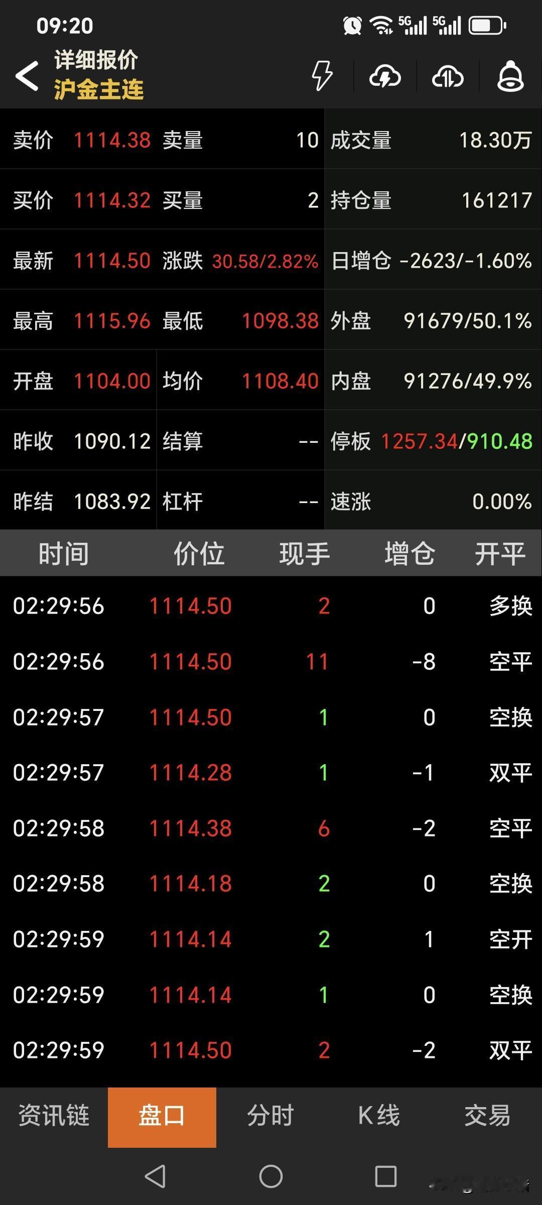 周五夜盘, 国内黄金期货 止跌回升,大幅上涨。 回顾一下, 当晚黄金运行情况。 当晚主力合约 开盘1104元,高开20.08元, 盘中最高升至1115.96元, 最低价1098.38元, 最终停收于1114.5元。 对于黄金期货, 期货小褚还是比较看好, 下周有望继续走强上涨!