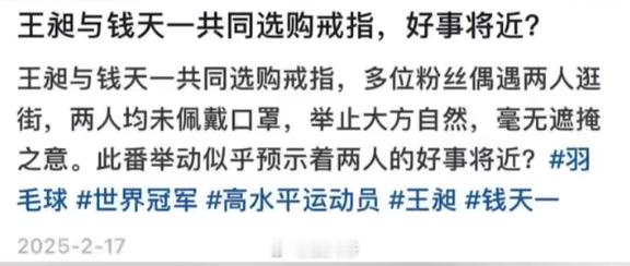 原来王昶的求婚戒指用心选了一年这哪是挑戒指,分明是选了一颗心!去年就有网友偶遇王昶和钱天一挑选婚戒暗示好事近,如今终于水落石出!去年王昶就逛遍多家奢牌店,只为找到最能代表自己心意的款式,最后选中寓意深刻的真心戒——愿幸运与爱都流向钱天一,他的“真心”已明目张胆、坦荡敞开。