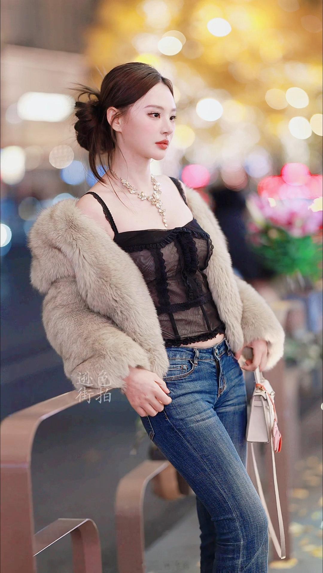 这套是暗黑甜酷风,很适合秋冬的户外休闲/街拍场合~核心单品是黑色短款毛绒外