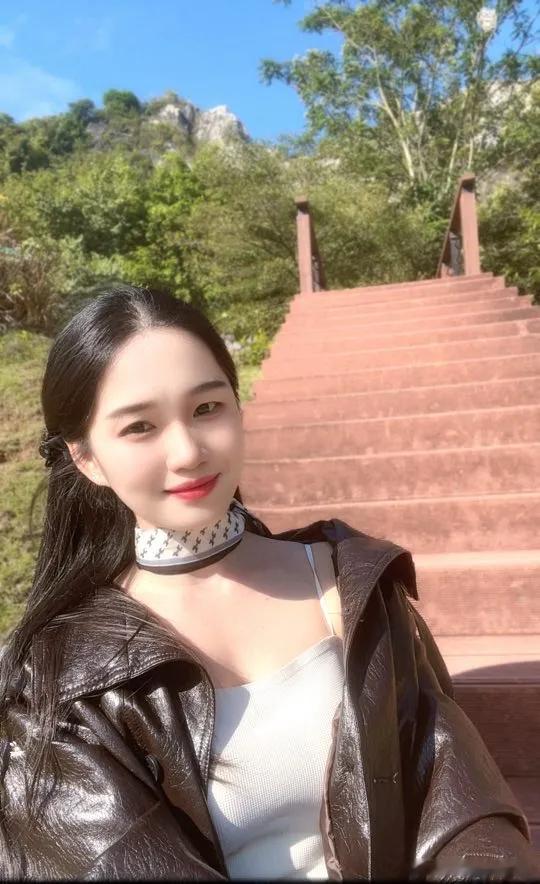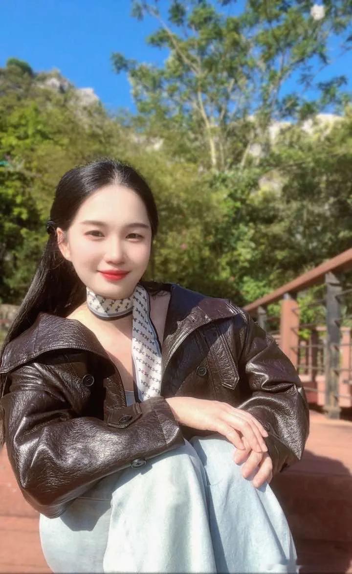 周依然,西装高跟鞋,丝袜点缀,柔美精致的姿态。周依然