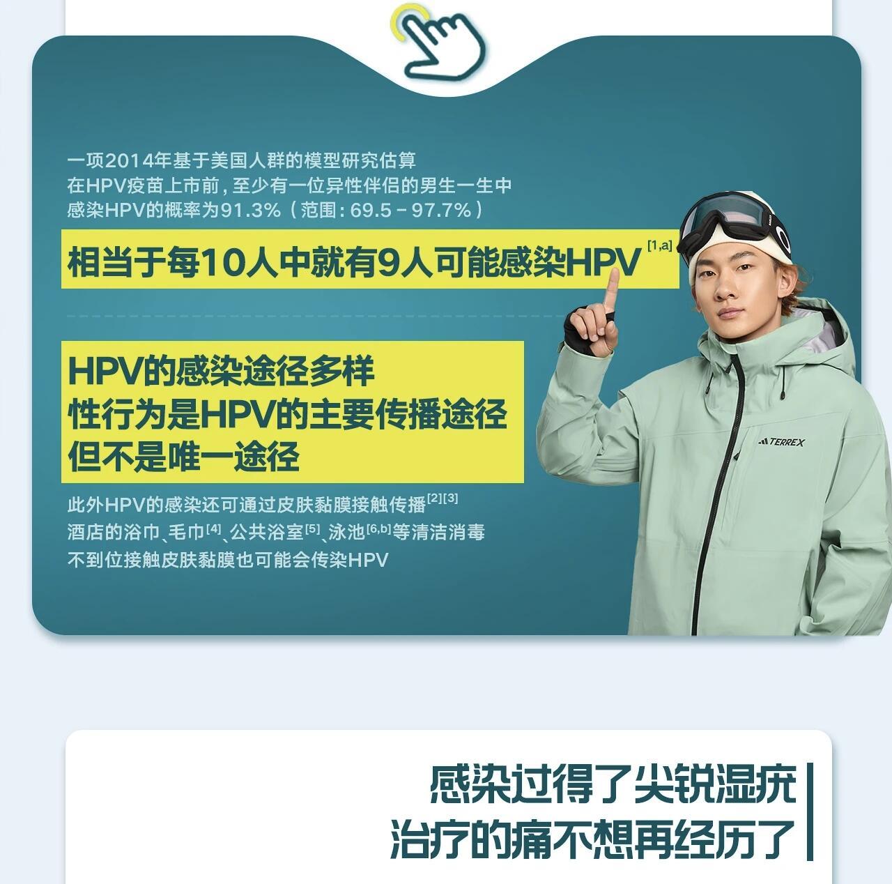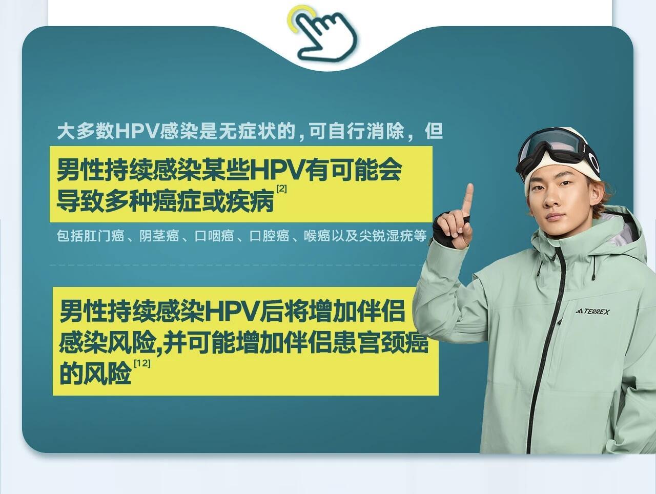 男性健康必修课冬奥赛场上,运动员们全副武装防伤病,只为守住赛场荣光;男性健康赛道上,也藏着HPV这个“隐形刺客”,男性同样普遍易感,且感染后大多无症状,极易在不知不觉中传播,稍有不慎就会中招,因此需要重视且防护。掌握HPV健康知识就像是苏翊鸣作为冠军用专业知识和提前备战训练去追求赛场表现一样,主动出击去了解、搭配日常好习惯,建筑一道健康屏障。现在9-26岁男性就可以接种4价/9价HPV疫苗,当然除了接种疫苗外,在平时的生活中还要保持良好的免疫力、注意个人卫生,也是科学有效的预防手段。为什么HPV是男性健康刺客