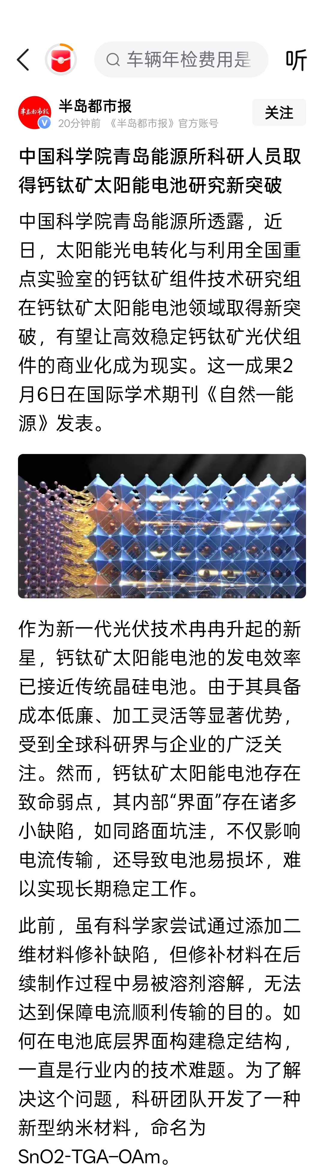中国科学院青岛能源所科研人员取得钙钛矿太阳能电池研究新突破