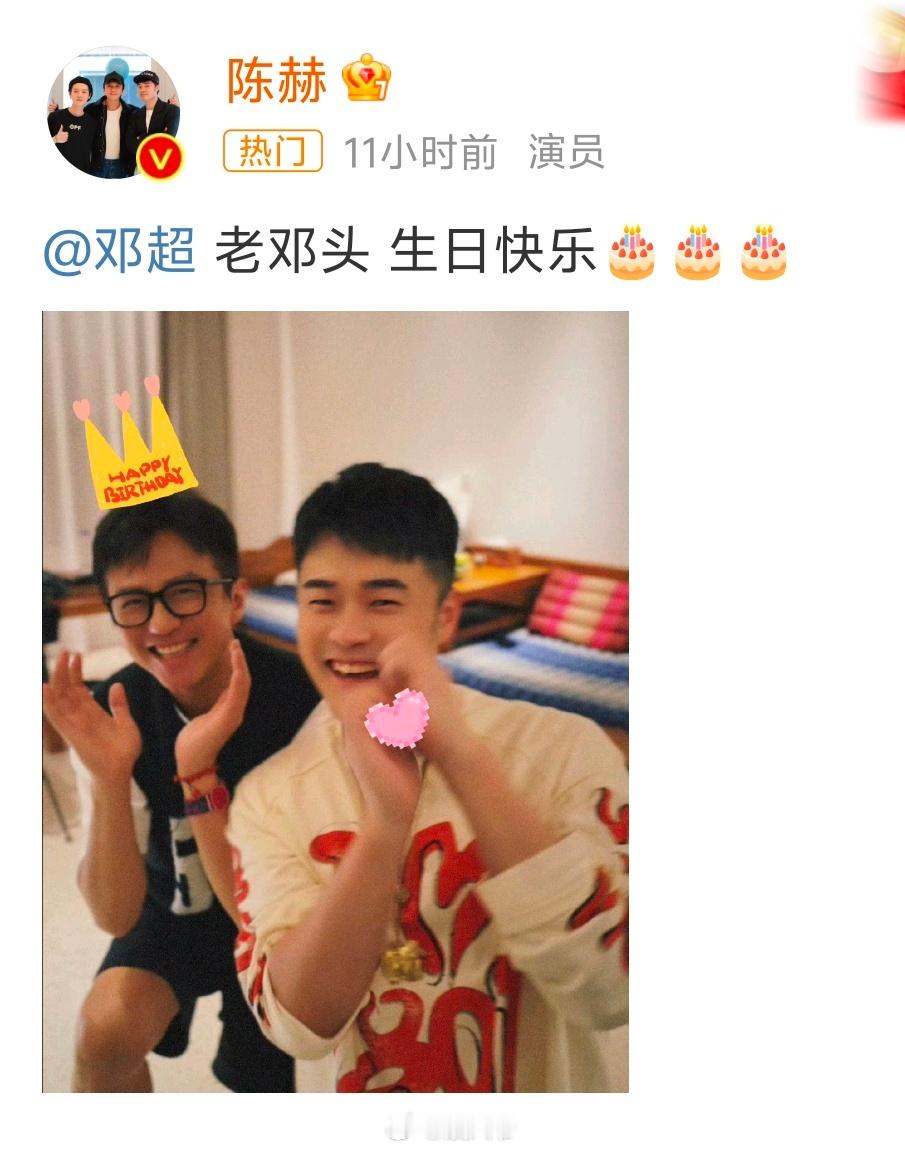 陈赫祝邓超生日快乐天霸动霸tua友谊长存啊!