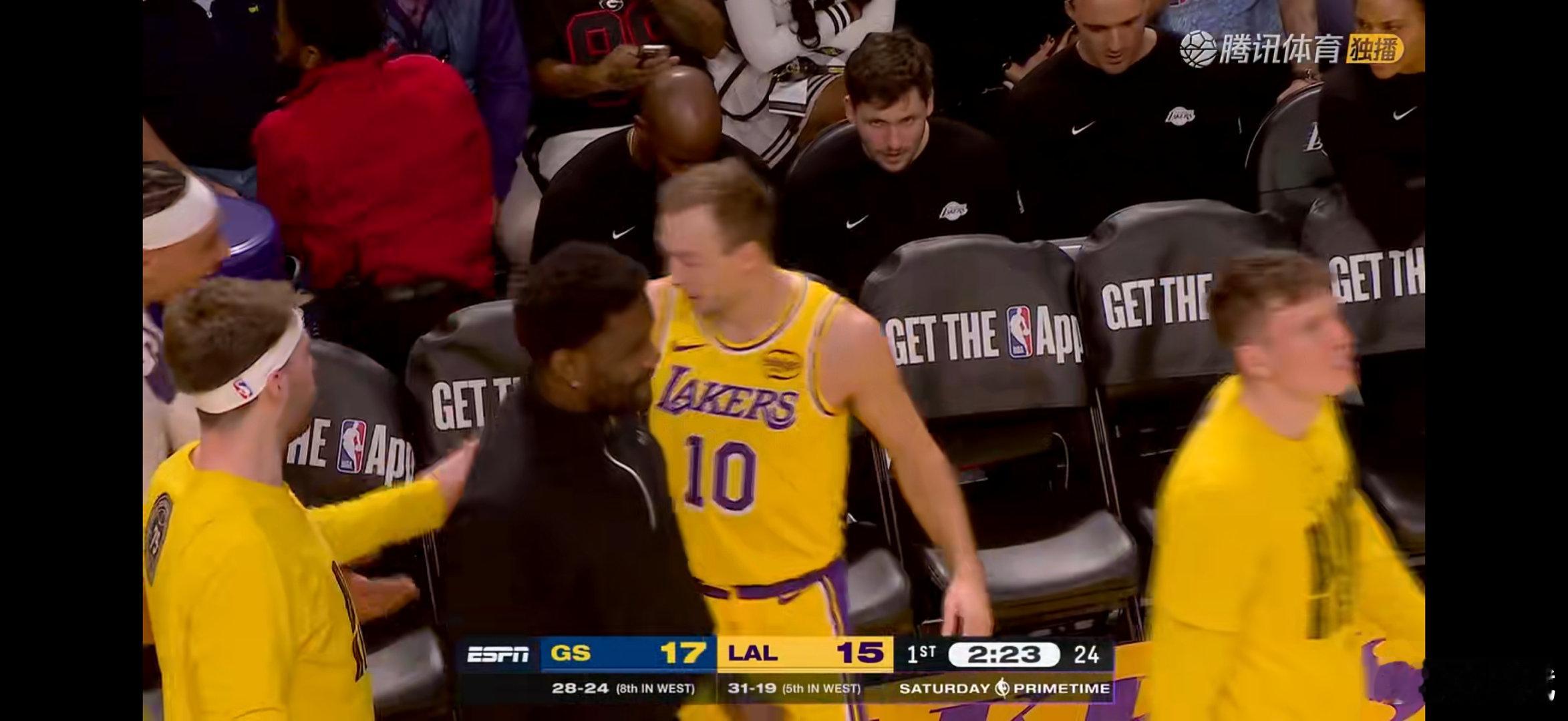 肯纳德加入湖人,上场第一球就投进三分球,不愧神射手!在詹姆斯、东契奇、里弗斯身边