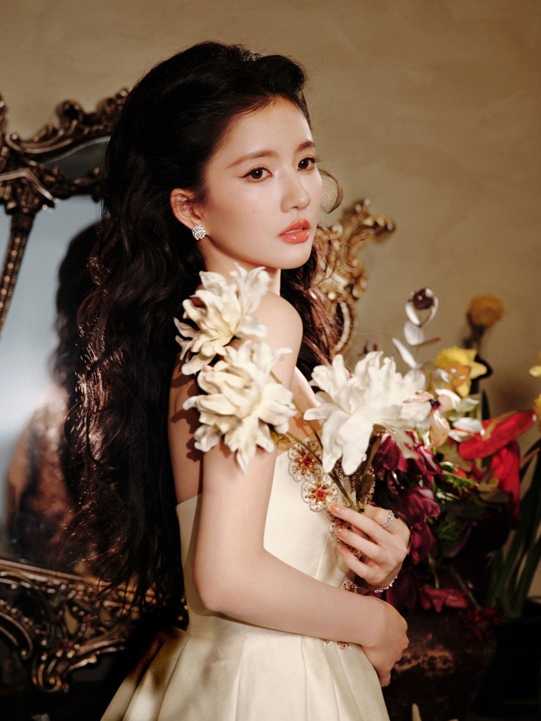 鎏金绣繁花,柔光映佳人。刘些宁一袭抹胸刺绣礼裙惊艳亮相,暖调复古光影勾勒温婉轮廓,精致珠宝点缀矜贵气质,捧花执奖灵动又大气,甜妹长相搭配优雅身段,将少女娇憨与法式贵气揉得恰到好处,每一帧都像油画里走出来的公主。