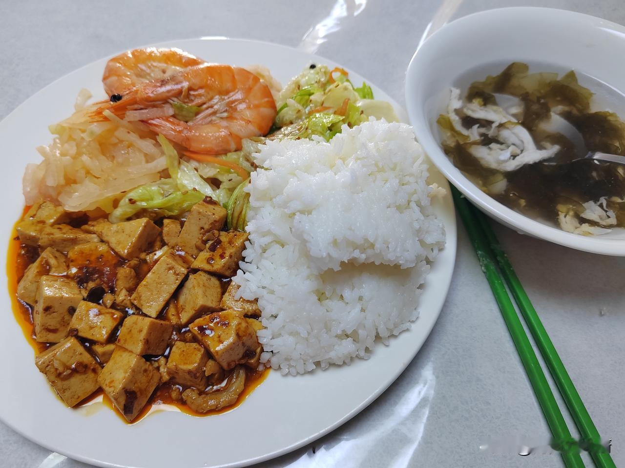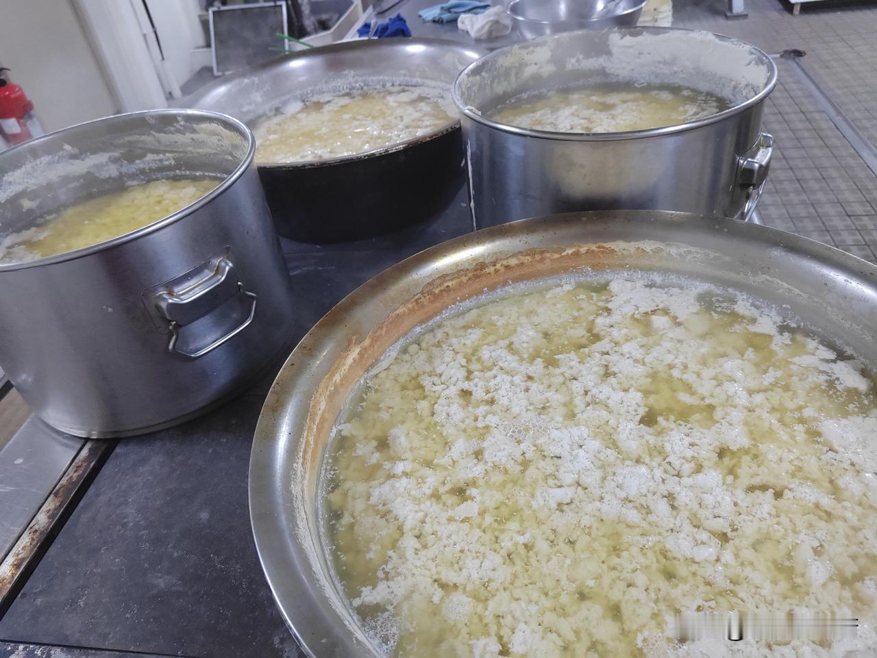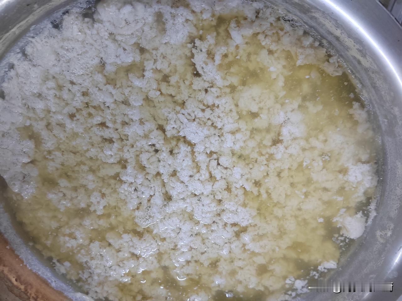今天是周末,又是休息的日子,(除了值班驾驶员外)我5:40分才起床,一夜又是没有睡好,船舶一直摇晃,寻思着早餐又是每人吃了,简单的少做点,只做了蛋炒饭,烙了两张油饼,煎了一盘火腿,熬的玉米糊。 果不然,到了吃饭的时间,只有两个中国人吃早餐,我在烙饼的时候,大台就给把黄豆淘洗了两遍,放下不粘锅,就赶紧先磨豆浆,因为豆腐做晚了,可能会耽误午餐,所以一刻也不能耽误,7:40分,豆浆全部磨完,磨了两桶零两盆,直接放电灶上烧着吧! 赶紧去打海水,今天风浪实在是太大了,海里的浪花白花花的一片,横浪敲打着整个船体(左舷),包括船尾也站不住人,我穿上棉衣,找了一个塑料桶,在舵机间旁边找了一个绳子,从右舷的旋梯下面放下去,刚刚到水面,一个浪花直接把桶给打掉了,塑料桶顺着船尾往后方漂着,完了,赶紧把绳子拉上来。 回到厨房,有个二水吃过早饭了,我对他说了,他说走,我帮你打去,走到菜库门口,二水顺便把棉衣棉裤穿上,找了一根撇缆绳,系在铁桶上,他在前边,我在后面,一个浪头过来,就给把桶里打满了水,我俩一块往上拉,终于打到海水了。 回到厨房,豆浆已经烧开了,赶紧把海水也烧开,兑上淡水慢慢的点吧,半个小时的功夫,豆浆开始结块了,又过了十分钟,豆浆开始清汤了,不再浑浊了,这就好了。 由于船上没有筛子和滤布,我就用了两个塑料菜框,问大台要了一个新的床单,用热水洗了一下做滤布,9点钟就全部做好了,有了这些豆腐,这两天做菜就不愁啦!今天的午餐也吃上了,麻辣豆腐,萝卜丝炖虾,凉拌生菜和紫菜蛋花汤就是今天的午餐!