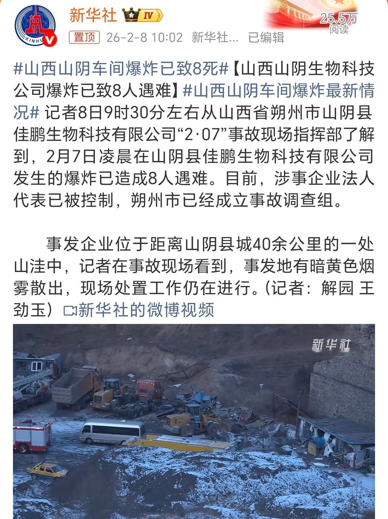 山西山阴车间爆炸已致8死临近过年发生这样的事,大家出行都注意安全,平安回家!
