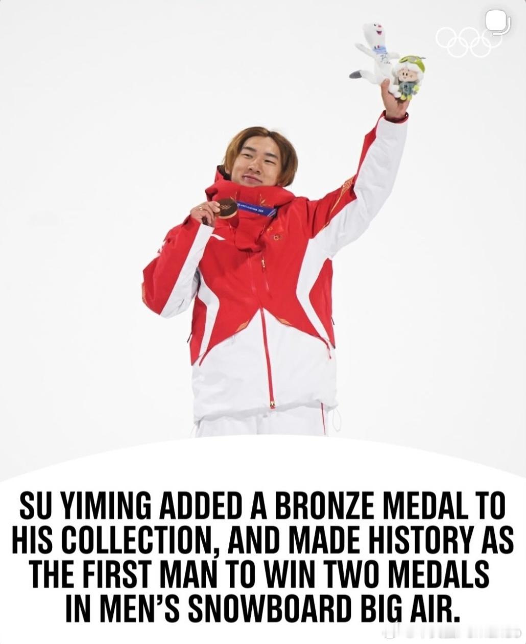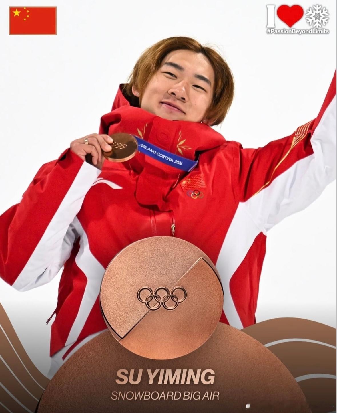 苏翊鸣大跳台铜牌苏翊鸣🥉了不起的小鸣!在米兰冬奥会单板滑雪大跳台项目以168.50分获得了铜牌!这场比赛结束之后,Olympics奥运会官方专门发了好多小鸣相关的内容:1️⃣冬奥会史上第一位两次夺得单板滑雪大跳台奖牌的运动员2️⃣北京冬奥会和米兰冬奥会,让苏翊鸣已经集齐了奥运会的金银铜牌这块奖牌也是中国代表团在2026米兰冬奥会的第一块奖牌!!!神仙打架的单板滑雪大跳台,苏翊鸣是唯一一位出现在北京+米兰两届奥运会这个项目决赛的运动员!