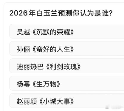 白玉兰预测,杨幂,热巴,赵丽颖总的有一个得奖了吧!别总是给本地人