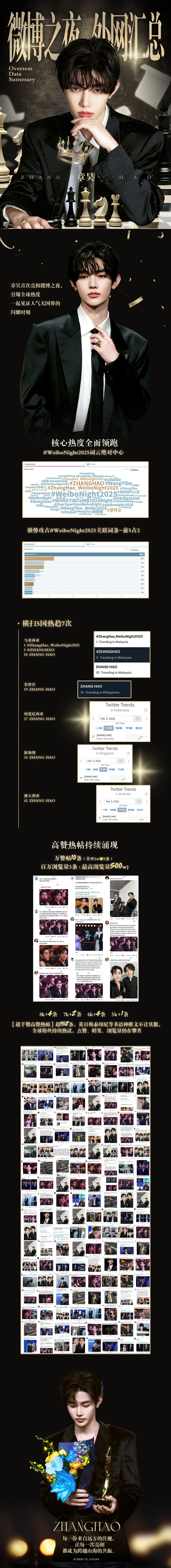 章昊首次亮相微博之夜,引爆全球热度,10条万赞160+千赞,各国高位趋势