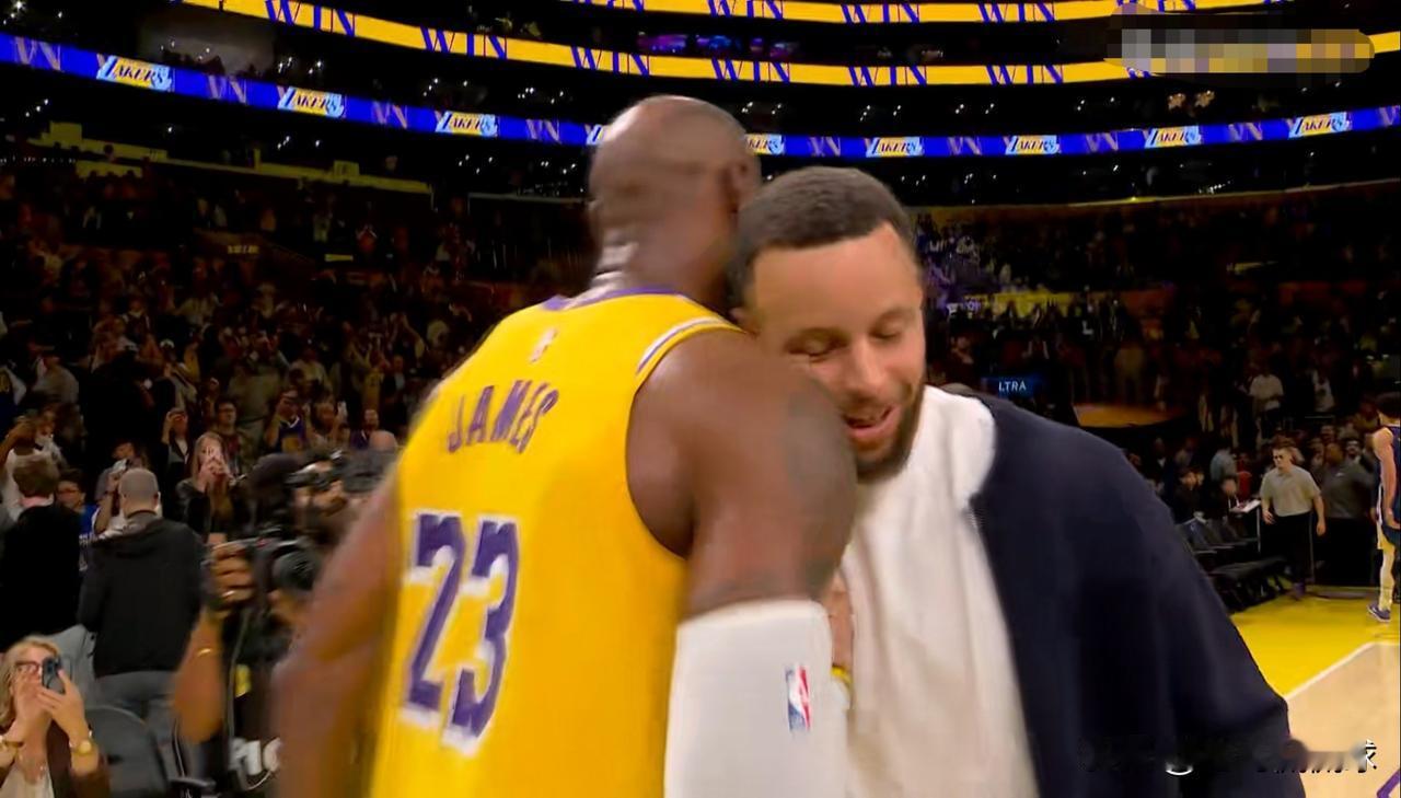在今天湖人主场以105:99力克勇士的赛后,发生了特别感人的一幕。当比赛结束以后,41岁的詹姆斯在和追梦格林、穆迪、梅尔顿等勇士球员拥抱致意后径直走向了库里,而此时37岁的库里也在焦急的等待着詹姆斯的到来。两人见面以后聊的是热火朝天,他们在寒暄了好大一会儿之后以拥抱的方式进行告别,场面看起来特别的感人。 实事求是的说,当我看到这一幕的时候,我忍不住热泪盈眶。