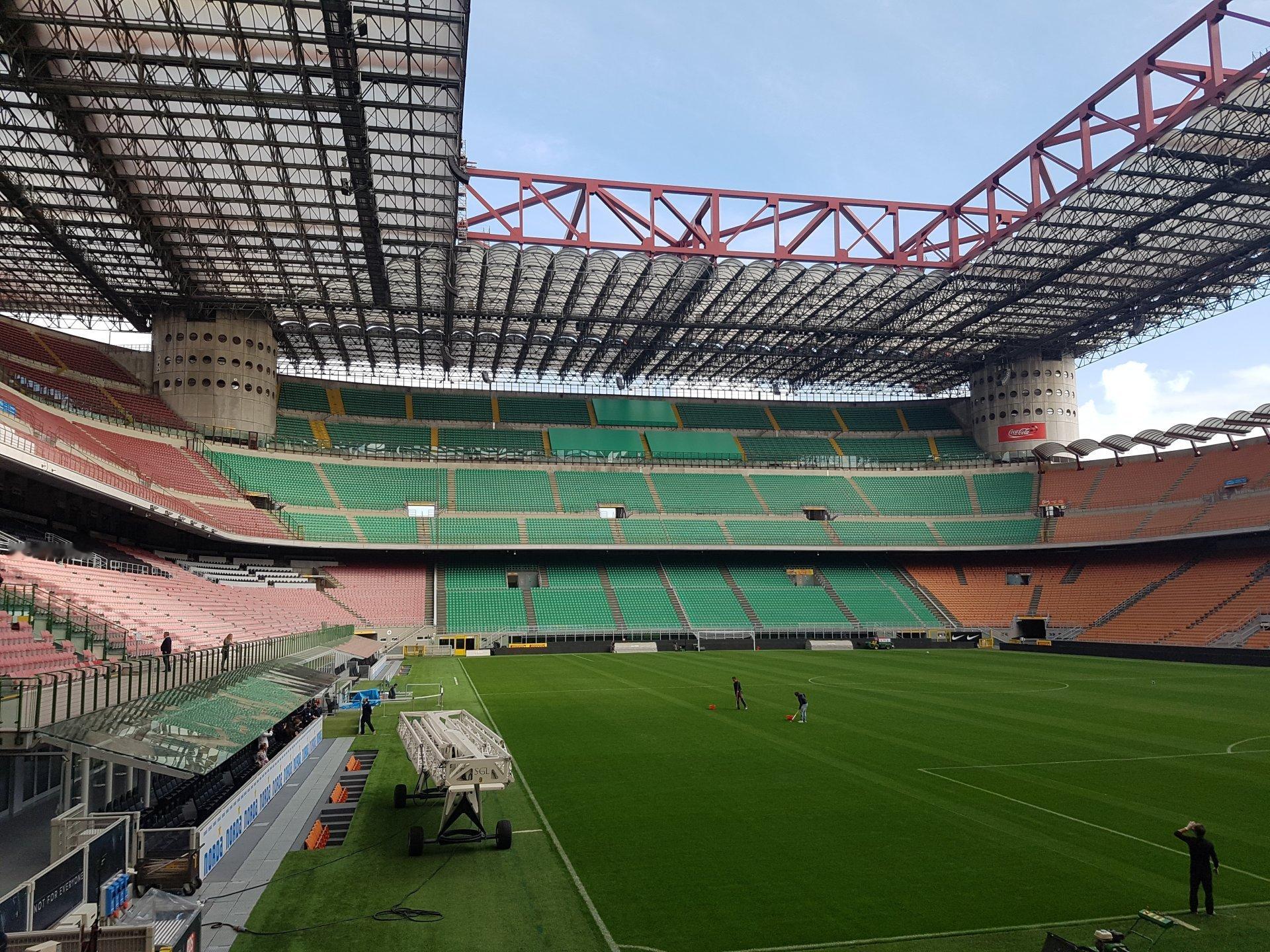首先开幕式选址意大利米兰圣西罗体育场举行 ,可以说是这座城市最具标志性的体育地标建筑 ,整体设计借鉴了古罗马竞技场的椭圆形平面 ,结合当时新兴的钢筋混凝土结构技术 ,以外露的混凝土结构 、螺旋塔楼与强烈的垂直线条 ,使建筑呈现出一种近乎不加修饰的结构表达 ,带有绝对的原始而克制的工业美感 ,成为米兰城市景观中极具辨识度的存在。米兰圣西罗体育场更有“足球圣殿”的美名 ,在这里见证了意大利乃至世界足球史上无数经典时刻。同时今年也是这座建筑落成的第 100 年 ,再度迎来全新履历的书写。
