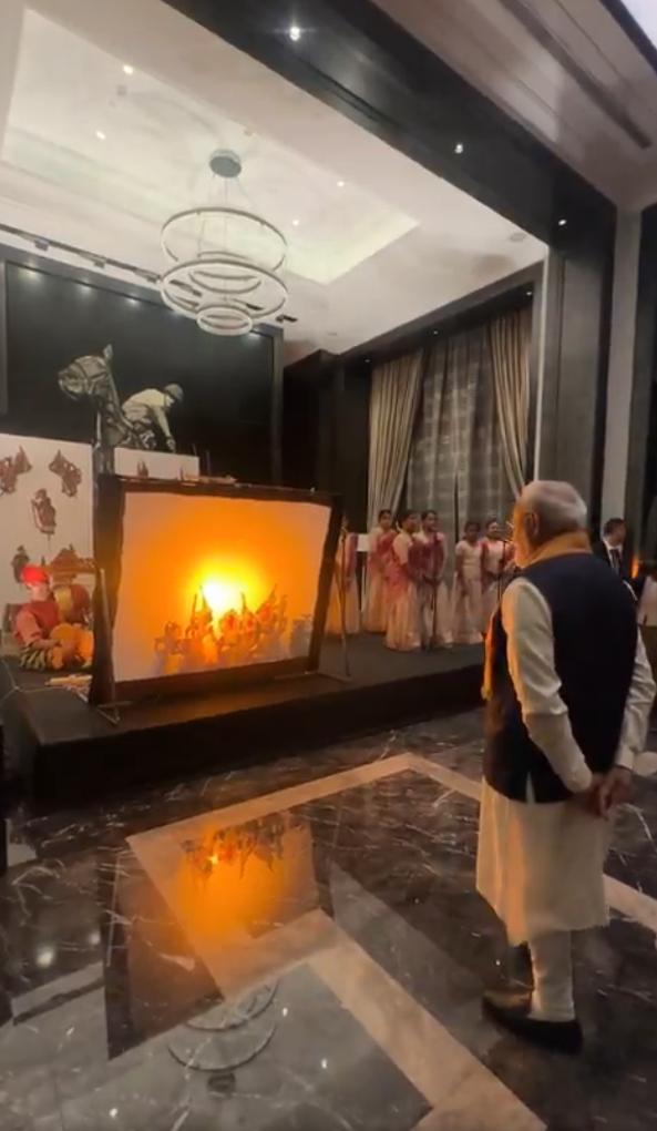2026年2月7日至8日,在吉隆坡印度社区举办的欢迎仪式上,莫迪聚精会神地观看这种传统的马来西亚-印度尼西亚艺术形式,视频配有英文字幕,讲述了《罗摩衍那》中关于团结和结盟的故事。在场的还有居住在吉隆坡的印度侨民。 来自Arjunasukma学院的艺术家们表演了皮影戏,剧目为《Titah Seri Rama》。这场表演精彩地展现了我们之间共通的文化纽带,也突显了《罗摩衍那》这部史诗在不同国家经久不衰的影响力。 对马来西亚进行正式访问期间观看的皮影戏表演《提塔·塞里·拉玛》(Titah Seri Rama)。此举旨在强调两国共享的《罗摩衍那》文化遗产,以促进文化外交,同时加强两国于2024年提升的贸易和安全关系。