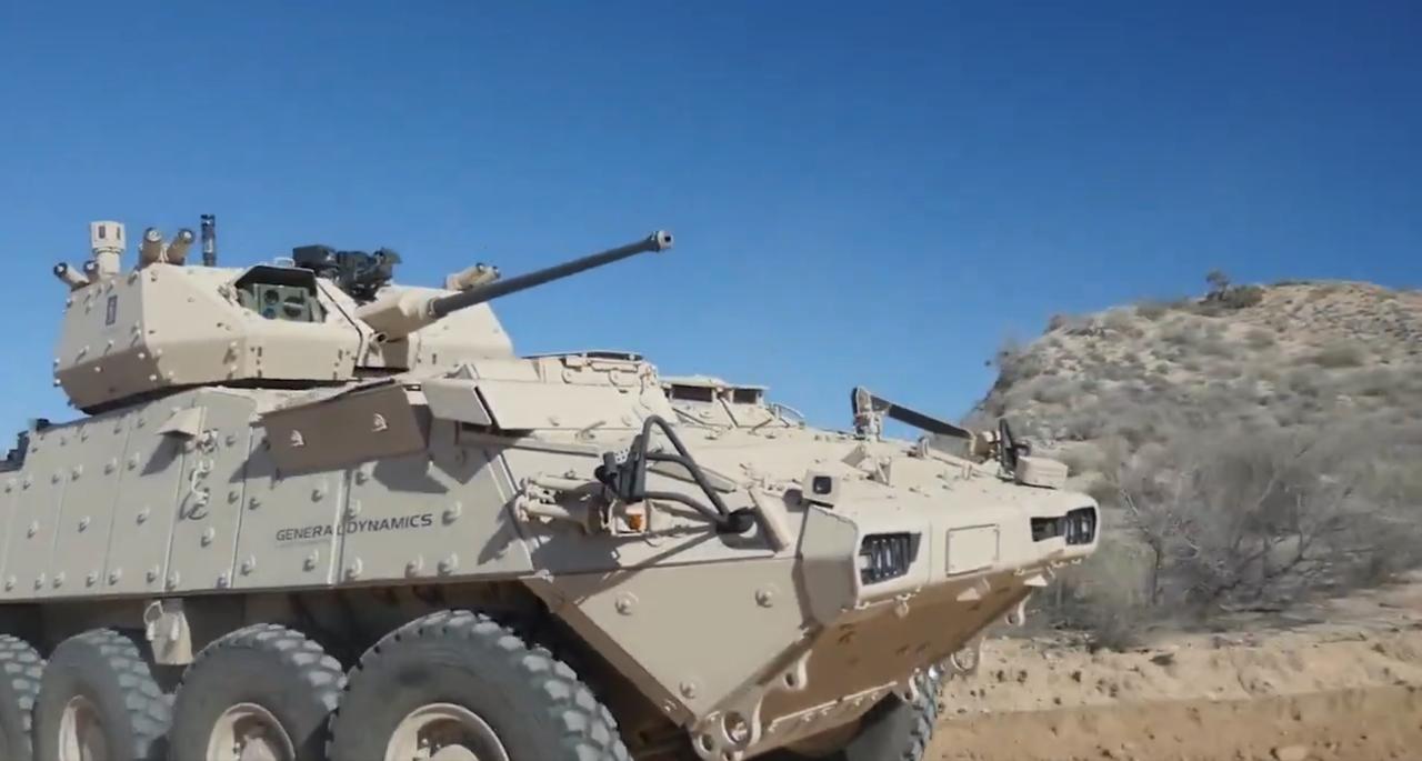 美国通用动力公司LAV装甲车上、集成在挪威康斯伯格公司MCT-30遥控炮塔上的M