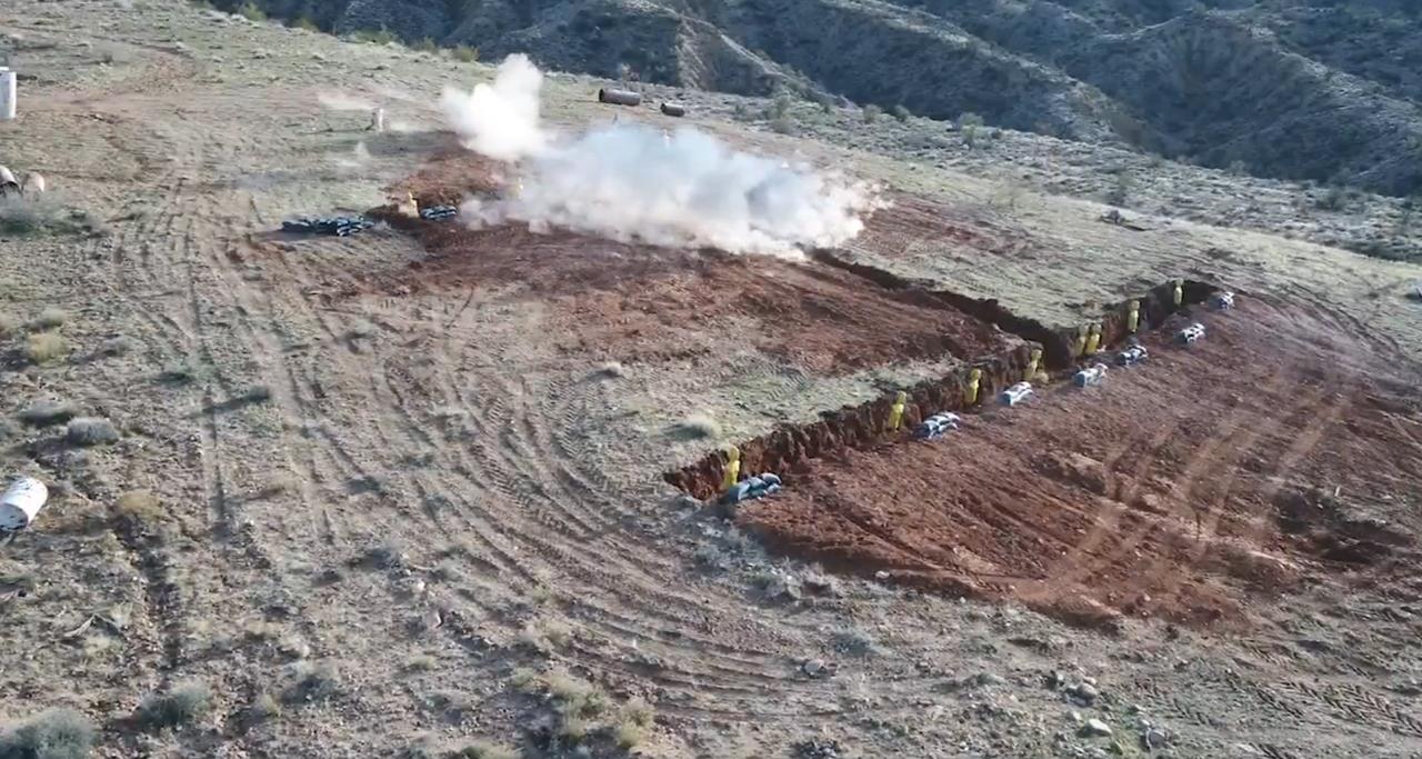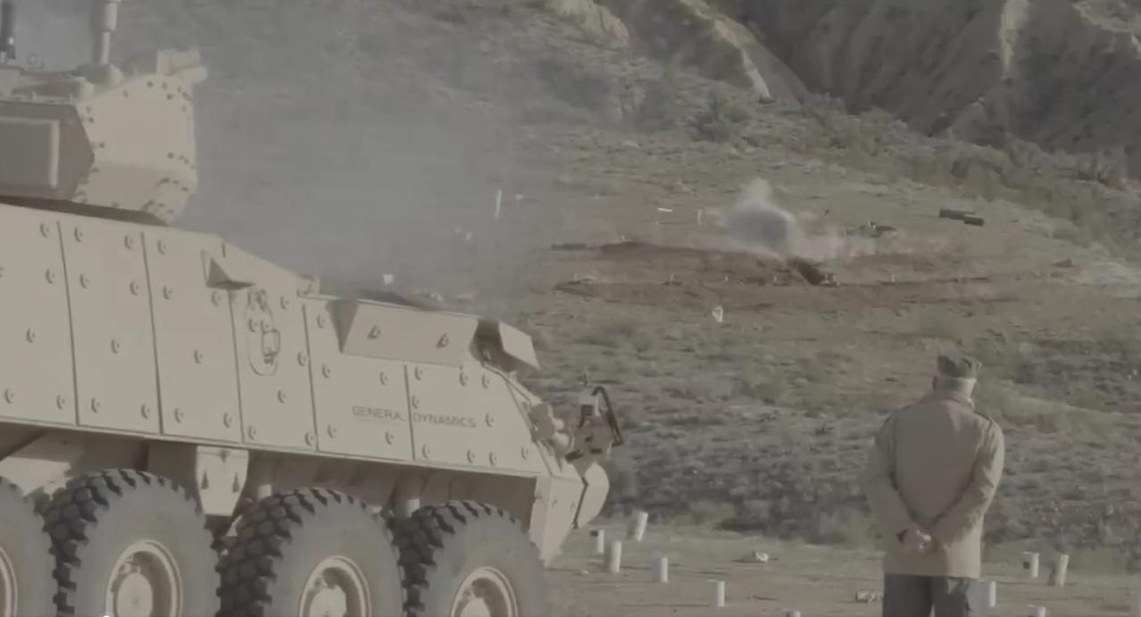 美国通用动力公司LAV装甲车上、集成在挪威康斯伯格公司MCT-30遥控炮塔上的MK44 Bushmaster II链炮,向沙漠目标(例如战壕、混凝土掩体和钢板)发射30毫米和40毫米炮弹,造成明显的爆炸和结构损坏。 MK44由诺斯罗普·格鲁曼公司(前身为Orbital ATK公司)开发,支持可编程空爆弹药,用于杀伤人员和攻击轻型装甲目标,MCT-30炮塔可实现稳定遥控操作;类似的实弹射击测试曾在2017年进行,凸显了北约持续的互操作性。