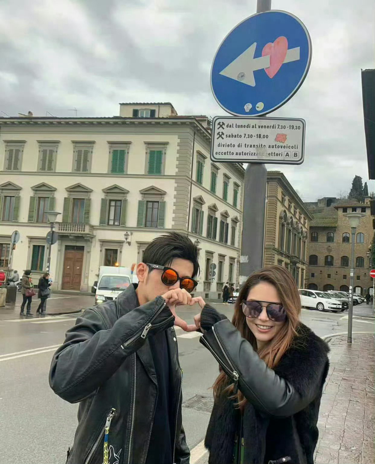 张天爱跟素人合影,胯真的好宽,大宅院似的