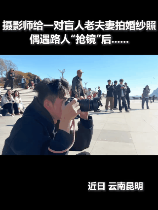 昆明海埂大坝暖心一幕!盲人夫妻补拍婚40周年纱照,陌生人自发围成“爱心圈”送祝福
