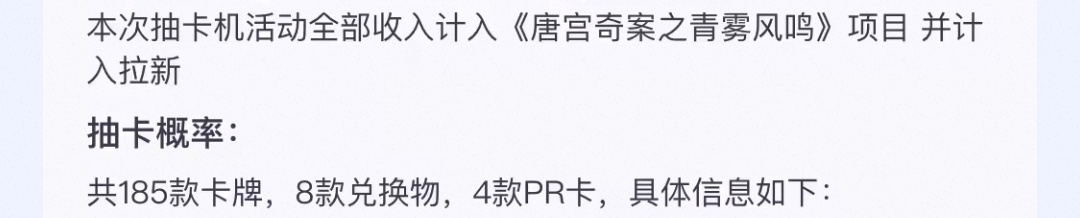 抽!必须抽!唐宫奇案的卡面真的爆好看,而且白鹿李佩仪的以后必涨!最主要是计入拉新!