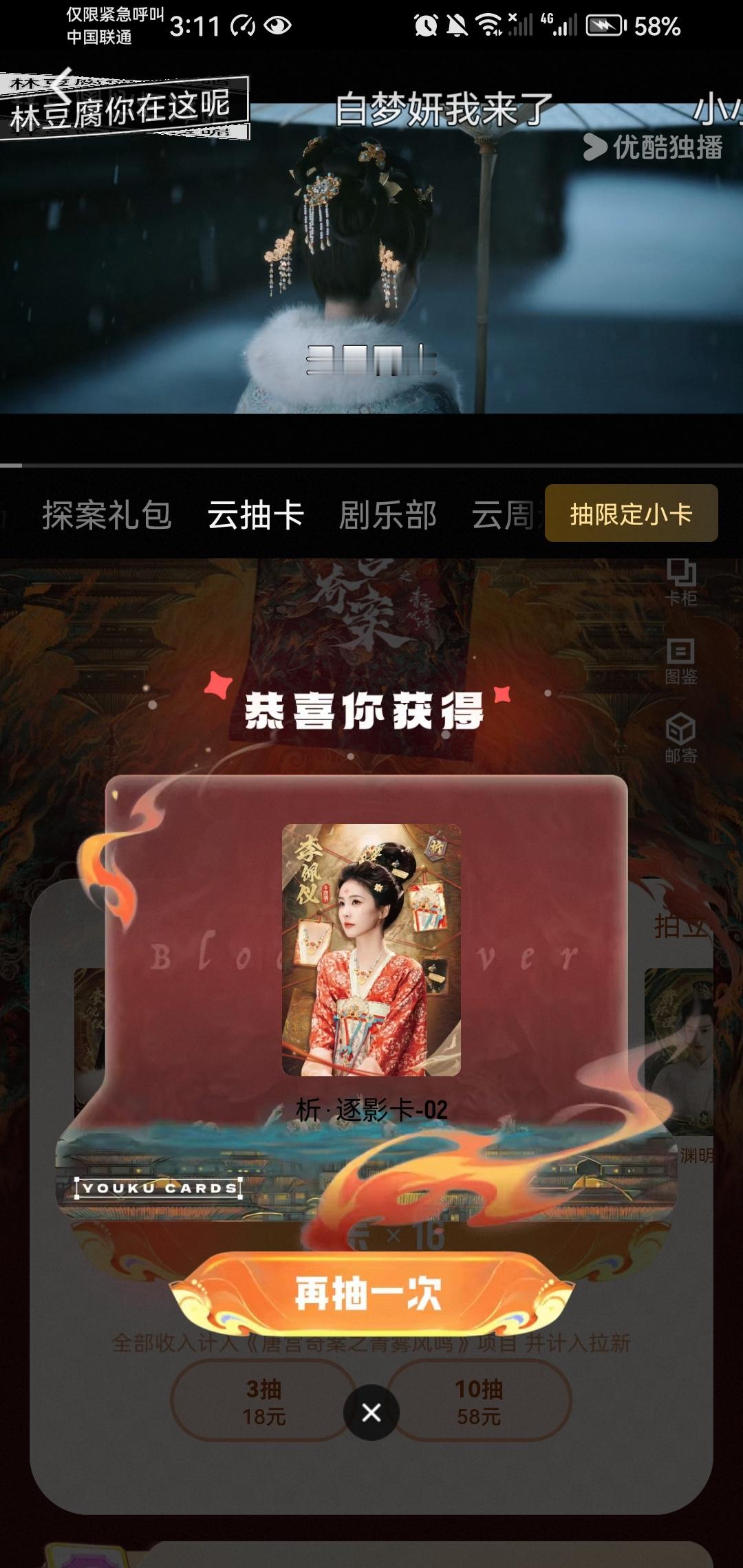 抽!必须抽!唐宫奇案的卡面真的爆好看,而且白鹿李佩仪的以后必涨!最主要是计入拉新