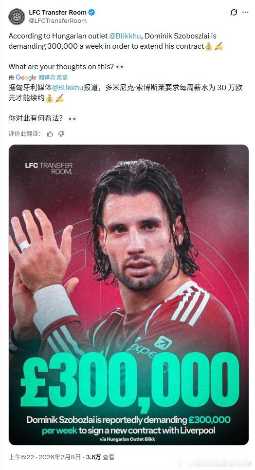 索博是必须要留的但是这个周薪如果给了,咱们的工资结构就彻底爆了而且以咱们管理层的风格,这个钱是肯定不会给的……希望能谈妥一个好价格吧利物浦 利物浦买人了吗