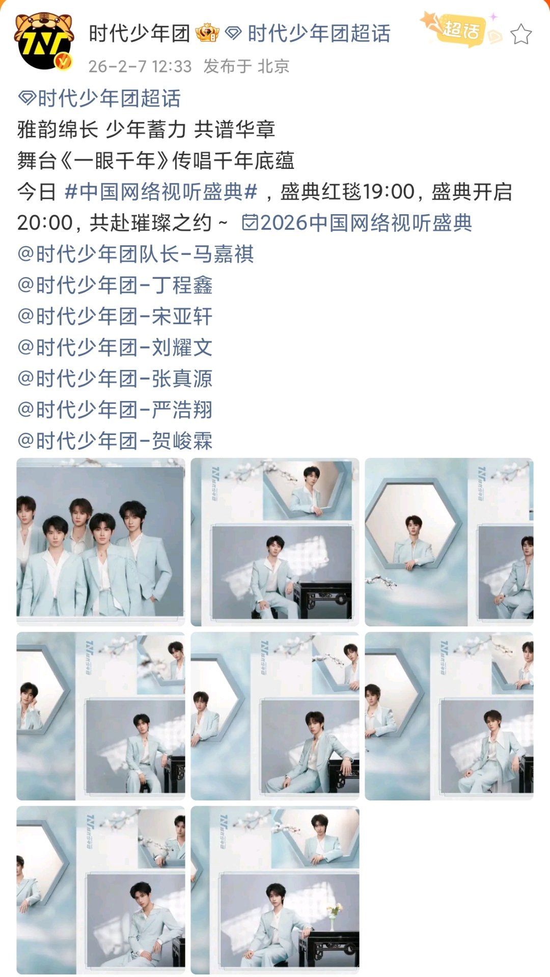 谁被全员蓝白造型狠狠戳中!干净又少年感拉满~舞台表现力绝了,《一眼千年》唱得大气又深情,视听双重享受!时代少年团全员蓝白look时代少年团一眼千年舞台中国网络视听盛典