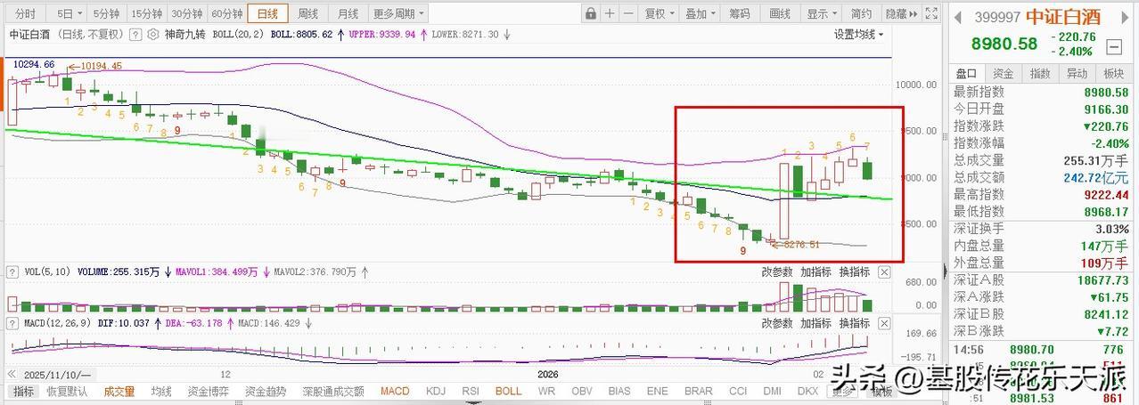 市场风格若切换,白酒板块能有机会吗? 摆在白酒板块面前有两座大山: 一个是:20周均线9320点,这里也是周趋势线的压力,要实现突破,可能还需要一段时间的震荡。 另一个是:20日均线,突破之前,也是强大的压力,但突破之后,就是支撑咯,若回踩之后,可以获得确认,不失为一次布局的“机会”。 相较于科技板块,白酒可能无人问津,但并不代表没有可投资的价值。
