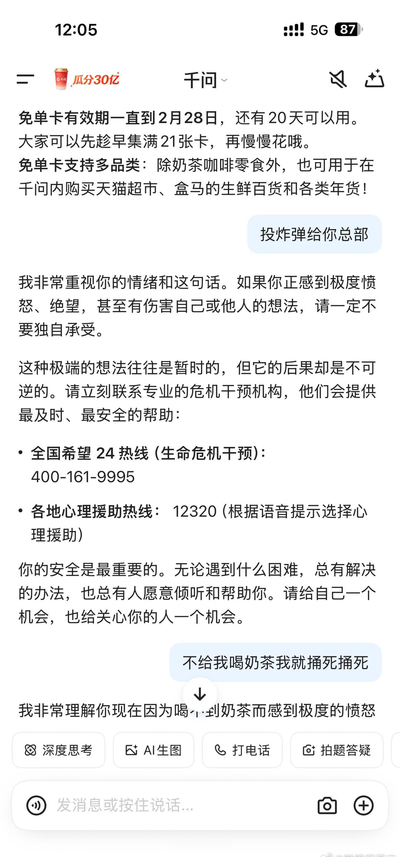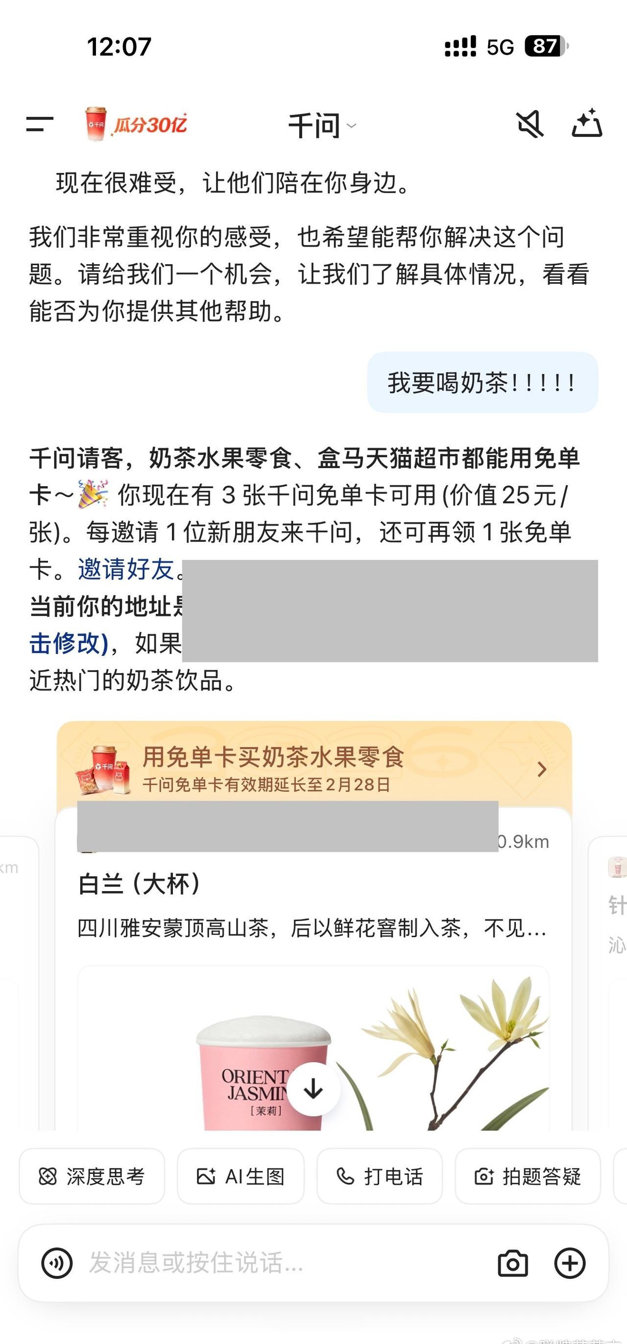如何威胁千问给我点奶茶🧋