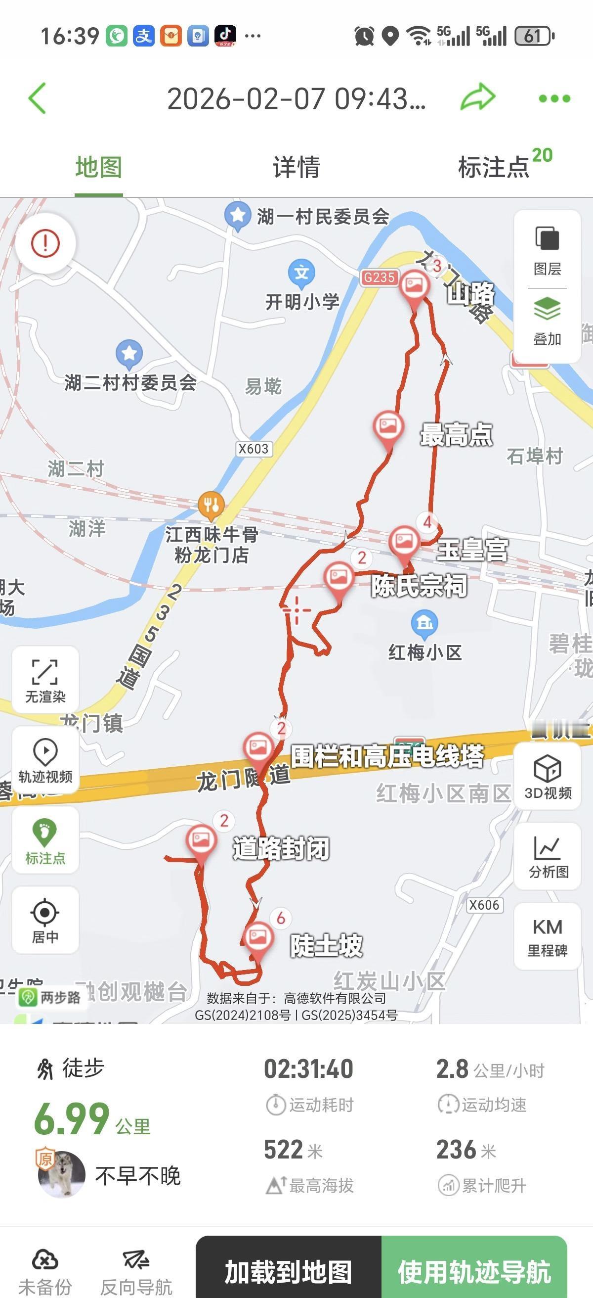 龙岩轻徒步线路“龙背山公园”附攻略 【龙背山】位于新罗区北城街道石埠村,低海拔城市郊野山,植被茂密,有健身步道、健身器材,休息亭、山野小道;山顶可俯瞰龙岩城区、闽西交易城、雁石溪;难度低,适合日常锻炼、亲子轻徒步。登山路线可长可短,通往紫金山体育公园的野路支线,建议到紫金山体育公园消防水塔即可原路返回,之后没什么野趣。今日乱走到紫金山体育公园融创观樾台,原路返回,全程约7公里累计爬升236米耗2.5小时。龙岩土狗户外龙岩风景 城市轻徒步 爬山好去处 爬山看风景 轻松徒步路线 户外徒步爬山 两步路轨迹:不早不晚“龙岩北城龙背山” 导航定位:①龙背山公园(入口)丨②玉皇宫 免费开放 ,免费停车场